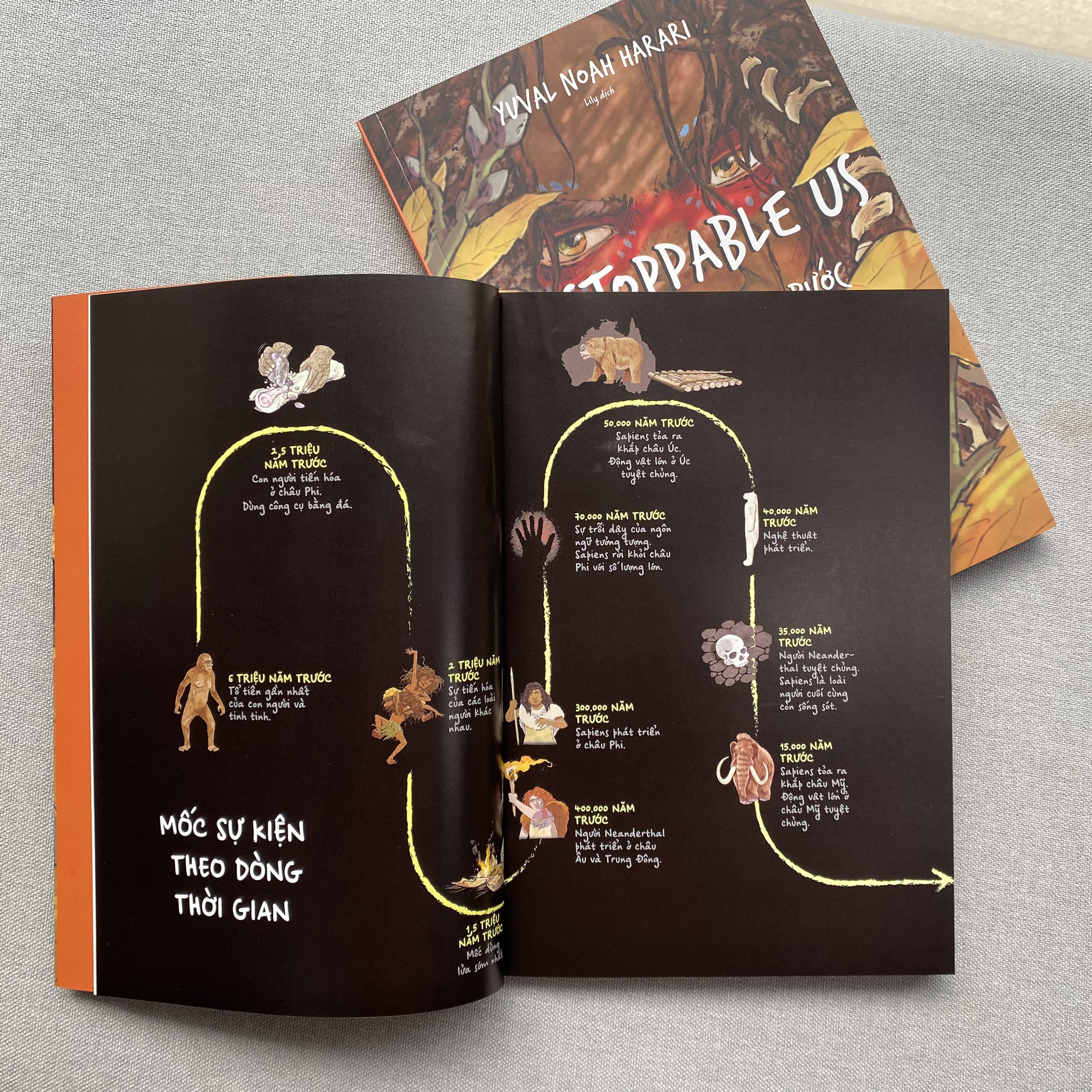 “Unstoppable Us – Không thể dừng bước” là tác phẩm lịch sử dành cho thiếu nhi được chuyển thể từ tác phẩm nổi tiếng “Sapiens – lược sử loài người” của tác giả Yuval Noah Harari nói về giống loài quyền lực nhất hành tinh. Đây là dự án ấp ủ từ lâu của tác giả với mong muốn đưa kiến thức lịch sử đến gần hơn với các độc giả nhí.