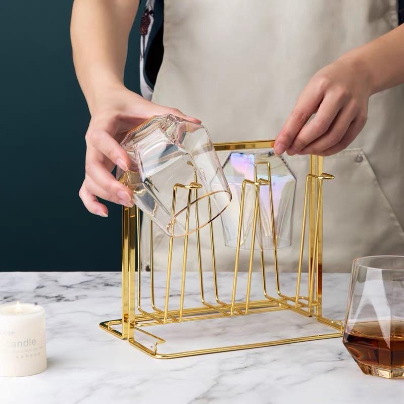 ✨Úp cốc chữ nhật và tròn kèm khay, giá úp cốc inox 304 mạ vàng cao cấp không hoen gỉ