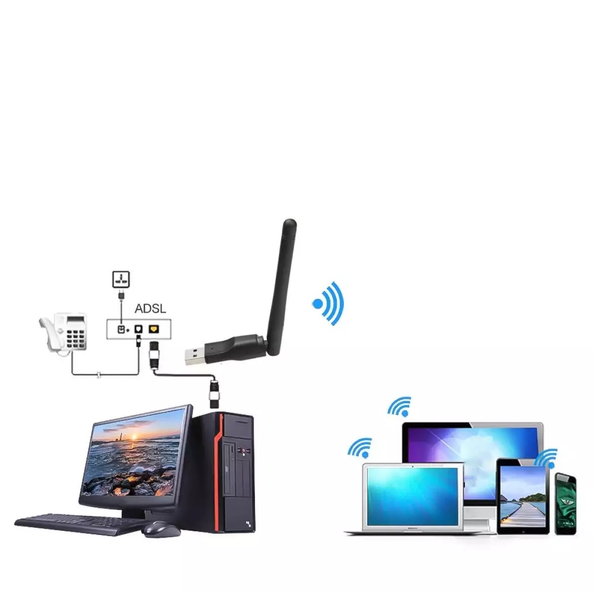 USB thu sóng wifi chất lượng tốt dành cho máy tính để bàn. - Với chức năng hỗ trợ thu sóng wifi cho máy tính PC, hay