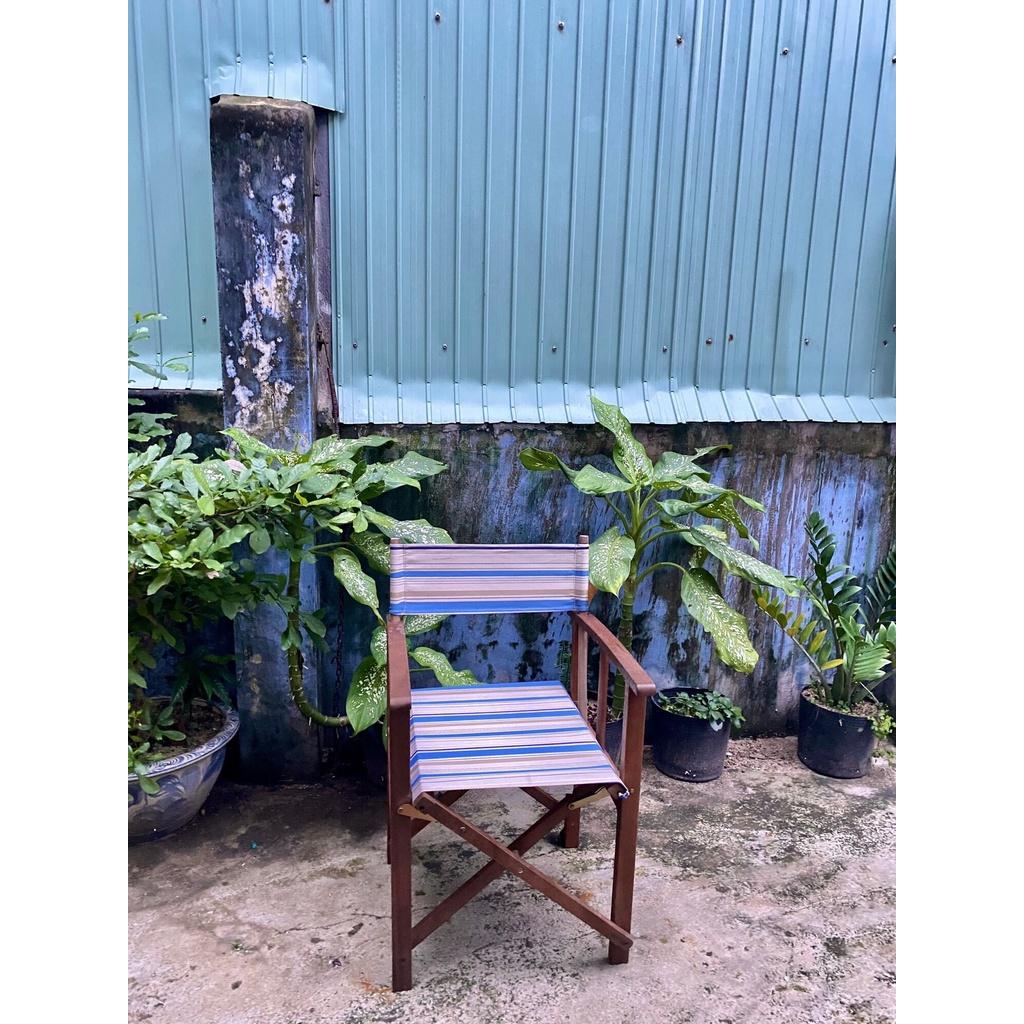 Ghế Xếp Đạo Diễn, Ghế Chụp Ảnh Thấp 45cm Vân Gỗ Vải Trắng