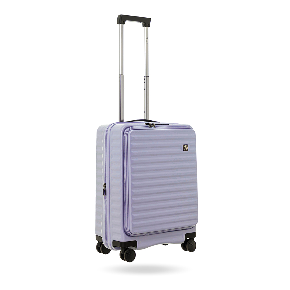 FEATURES - Vertical opening front panel with dedicated 15.6" laptop compartment (cabin size only) - Expandability for increased capacity - Rich, sophisticated interior organization with multiple compartments and pockets - 360-degree rotating double wheel system