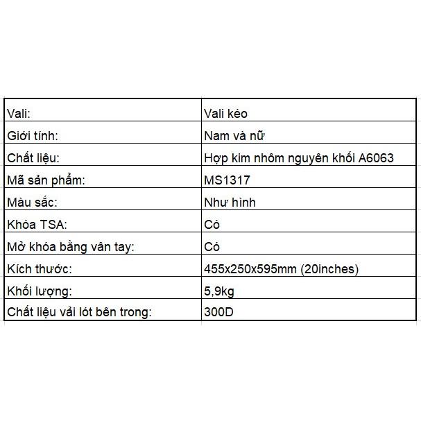 Vali hợp kim nhôm được làm từ nhôm nguyên chất kết hợp với: Silic, đồng, ạo ra sản phẩm có đặc tính vật lý trọng lượng nhẹ, độ cứng, đàn hồi, chống ăn mòn tốt.