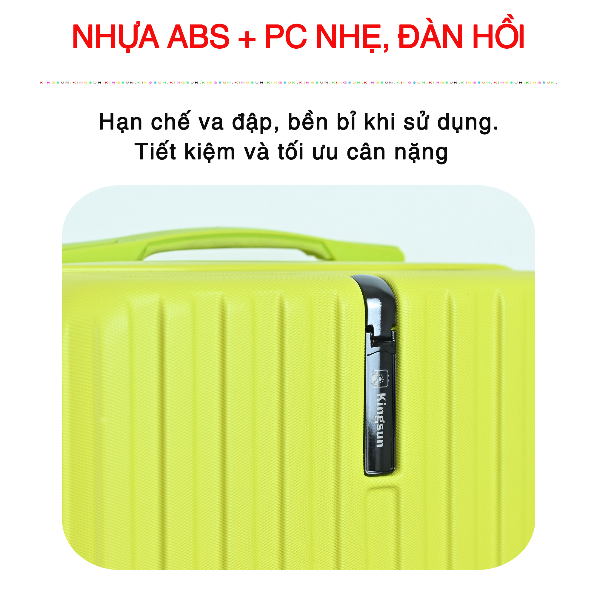 Chất liệu nhựa ABS tối ưu trọng lượng Vali được hoàn thiện từ chất liệu nhựa ABS (Acrylonitrile Butadiene Butadiene) với khả năng chống va đập tương đối tốt, kiểu dáng và màu sắc đa