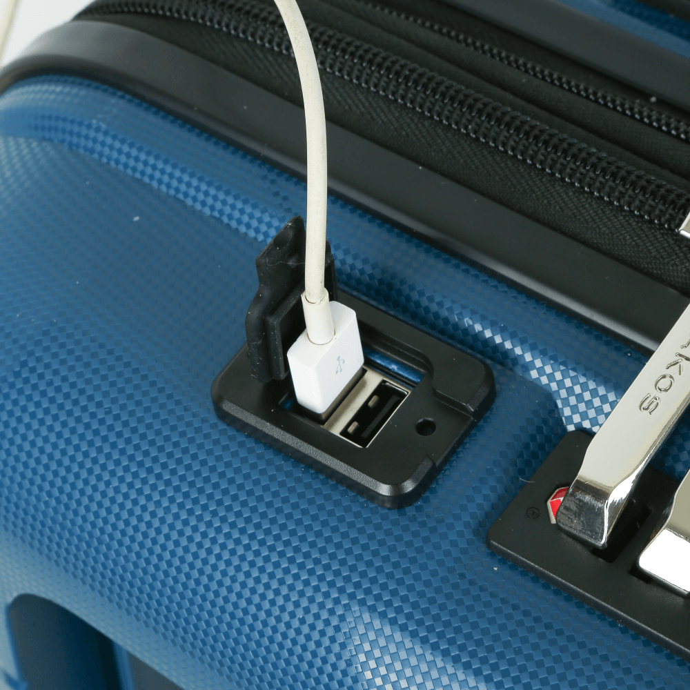Bên cạnh đó, vali Sakos Capola còn được tích hợp cổng sạc USB tương thích với nhiều thiết bị di động giúp bạn dễ dàng sạc pin điện thoại trong lúc chờ đợi tại sân bay, nhà ga, bến xe khách, trạm dừng chân,…