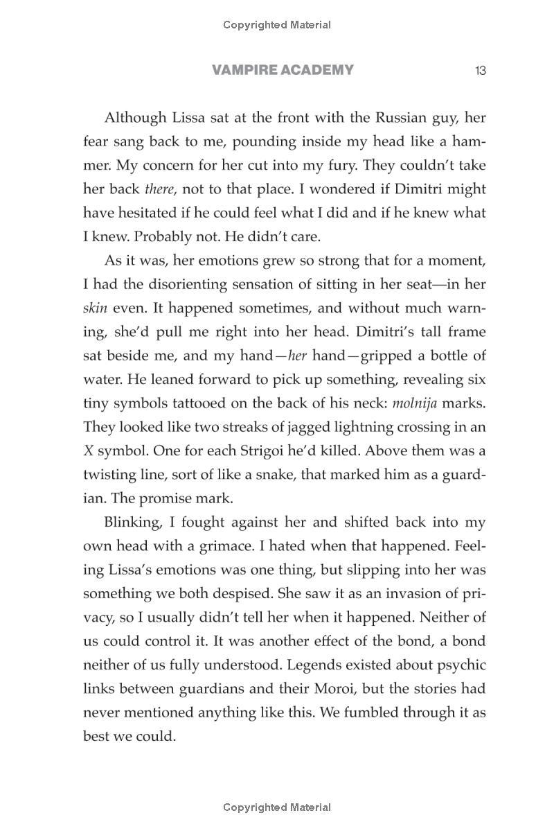 The story that kicked off the international #1 bestselling "Vampire Academy" series is NOW A MAJOR MOTION PICTURE! St. Vladimir s Academy isn t just any boarding school it s a hidden place where vampires are educated in the ways of magic and half-human teens train to protect them. Rose Hathaway is a Dhampir, a bodyguard for her best friend Lissa, a Moroi Vampire Princess. They ve been on the run, but now they re being dragged back to St. Vladimir s the very place where they re most in danger. . . .Rose and Lissa become enmeshed in forbidden romance, the Academy s ruthless social scene, and unspeakable nighttime rituals. But they must be careful lest the Strigoi the world s fiercest and most dangerous vampires make Lissa one of them forever. "