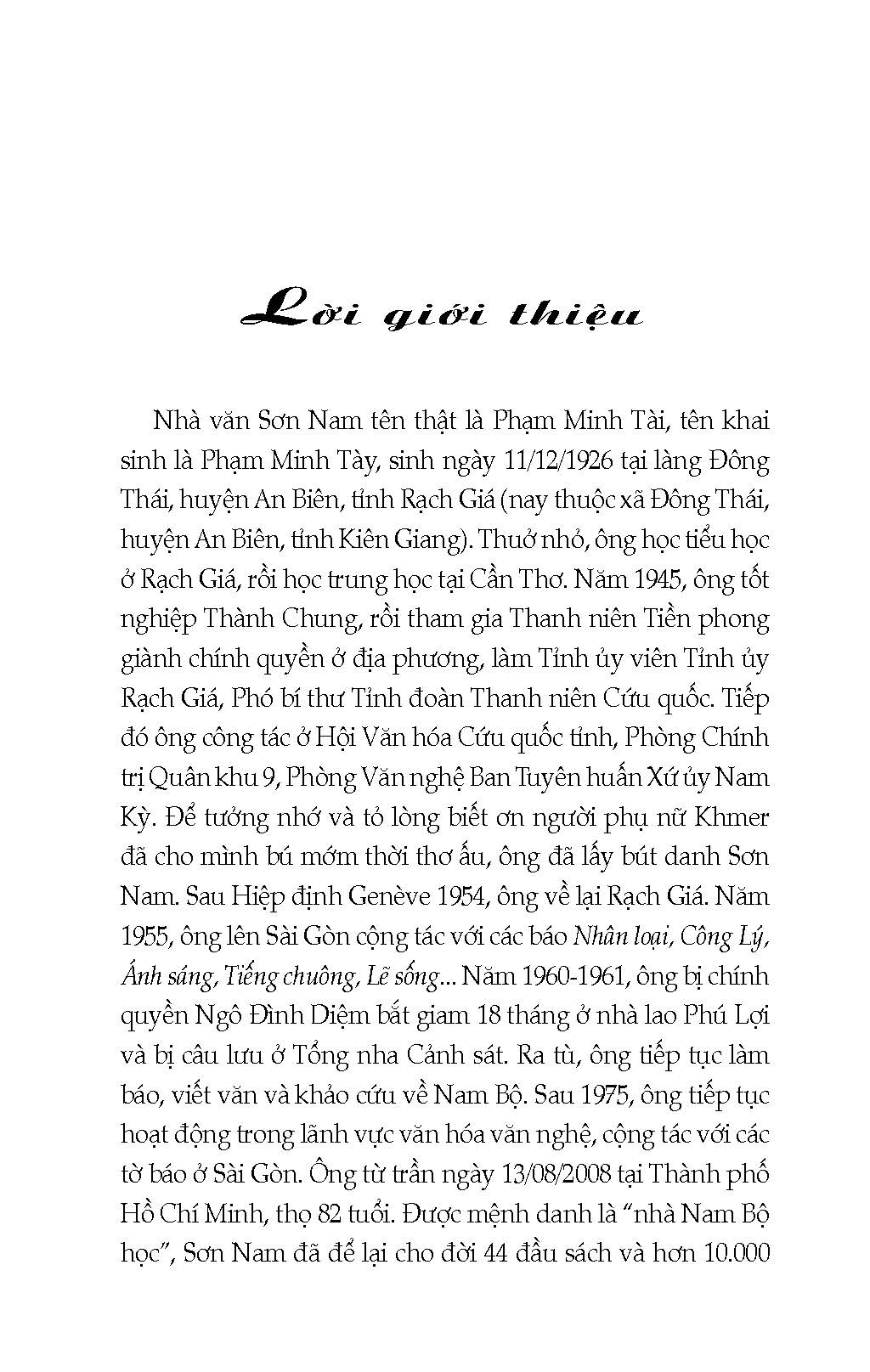 Tác giả: Sơn Nam Khổ sách: 14x20cm Số trang: 384 Giá bán: 105,000 VNĐ ISBN: 978-604-1-12855-2 In lần thứ 6 năm 2018 Giới thiệu tóm tắt tác phẩm: Cả 3 tập sách trên của nhà