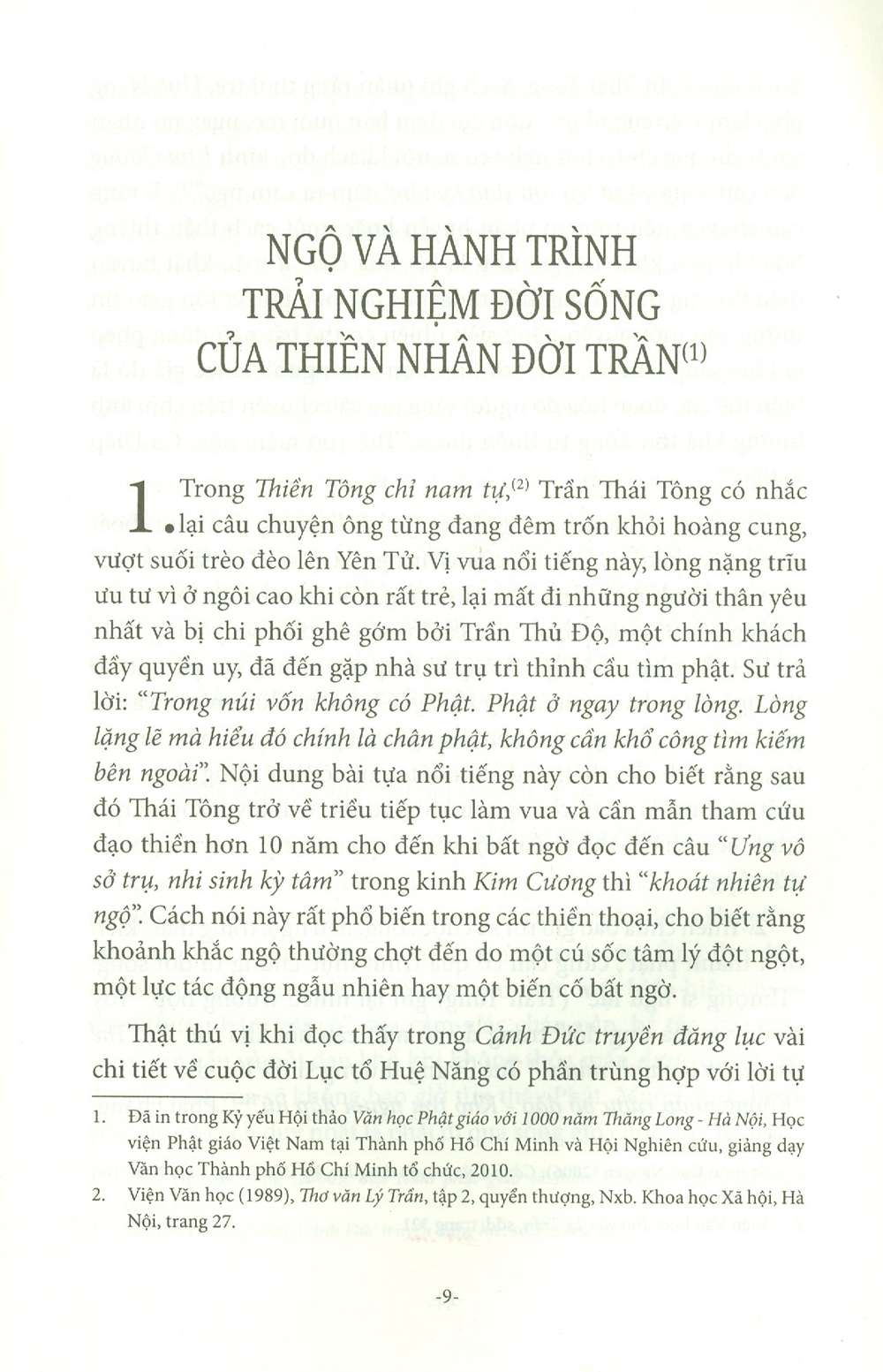 Những con đường, cách thức, phương tiện hay những góc độ tiếp cận khác nhau chẳng qua cũng chỉ nhằm phục vụ cho mục đích hướng tâm, đó là tiếp tục khám phá, khẳng định giá trị của tinh hoa văn học dân tộc trong bối cảnh giao lưu, tiếp biến giữa văn học Việt Nam với các nền văn học trong khu vực và trến thế giới. Hành trình khám phá, khẳng định những giá trị đó không bao giờ kết thúc và mỗi một nỗ lực tham gia, đóng góp đều xuất phát từ mong muốn được ghi nhận như là một dấu chân trong nhiều dấu chân tiếp nối. (Trích Lời Nói Đầu)