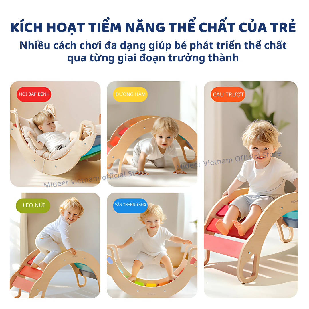 ✨Ván thăng bằng montessori bập bênh vận động cho bé Mideer Rainbow Wooden Climber