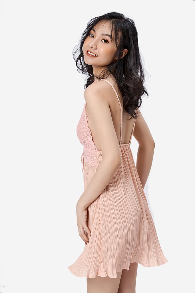 Đầm ngủ phi lụa cao cấp Wannabe DNS10 với táy áo cánh tiên rủ nhẹ che khuyết điểm vai thô tạo cho bạn gái vẻ đẹp tự tin, nữ tính cùng với phần lai nhún