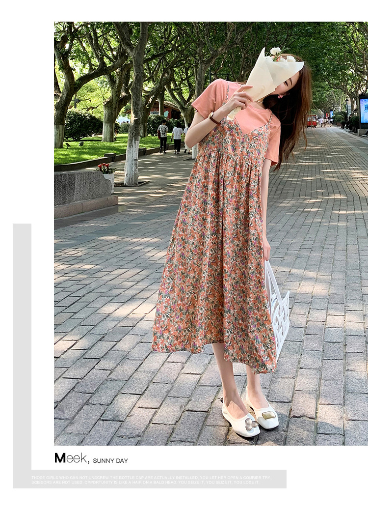 ✨Váy Bầu Công Sở Đi Biển Áo Ngắn Tay Cotton Thun Kèm Yếm 2 Dây Voan Hoa Cho Mùa Hè Lên Dáng Cực Xinh
