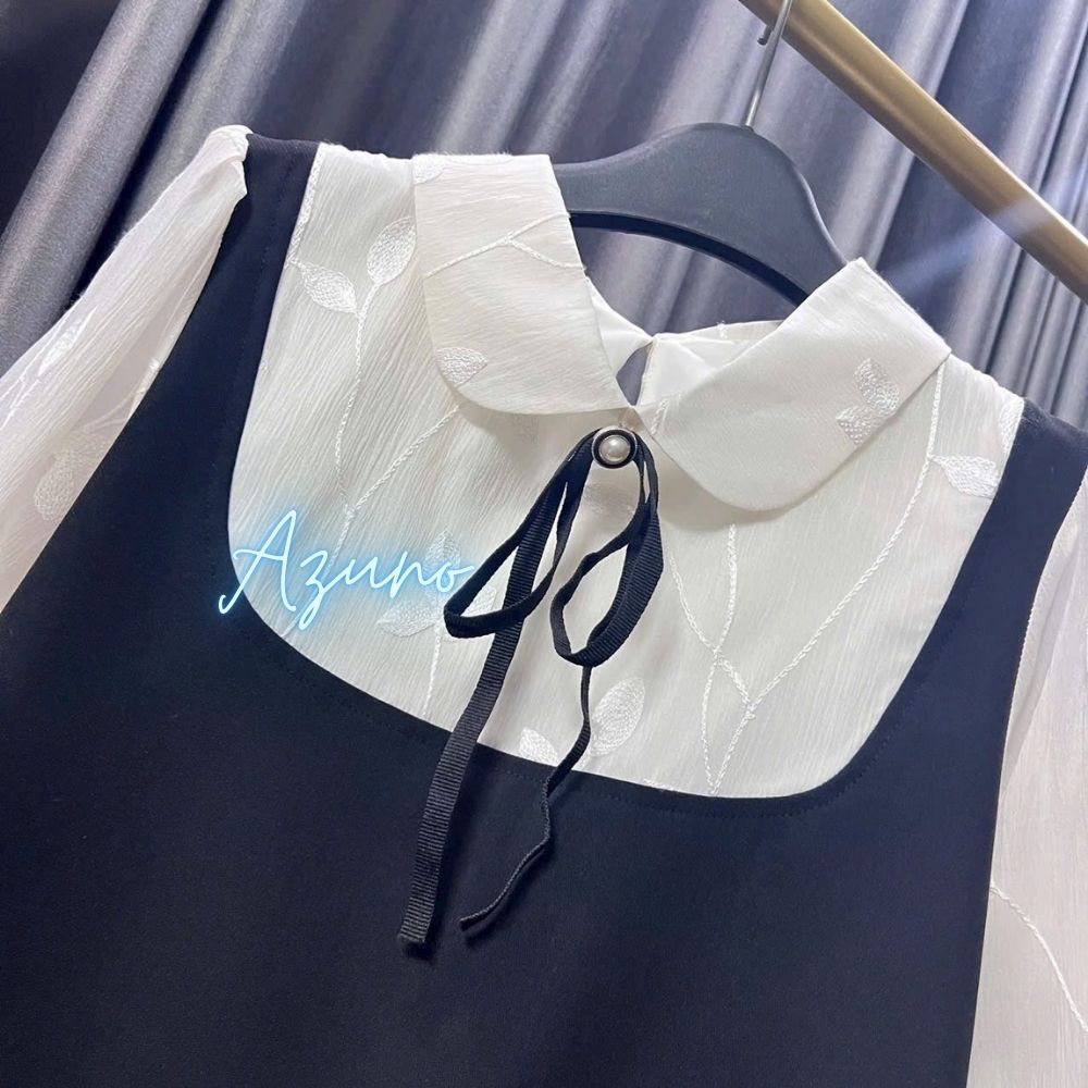 1. Thông tin chi tiết sản phẩm Váy bầu phối cổ tròn, đầm bầu đi làm, đi chơi, thiết kế sang trọng by Azuno Chất liệu chéo nhật phối trượt tằm xờ siêu mát tay