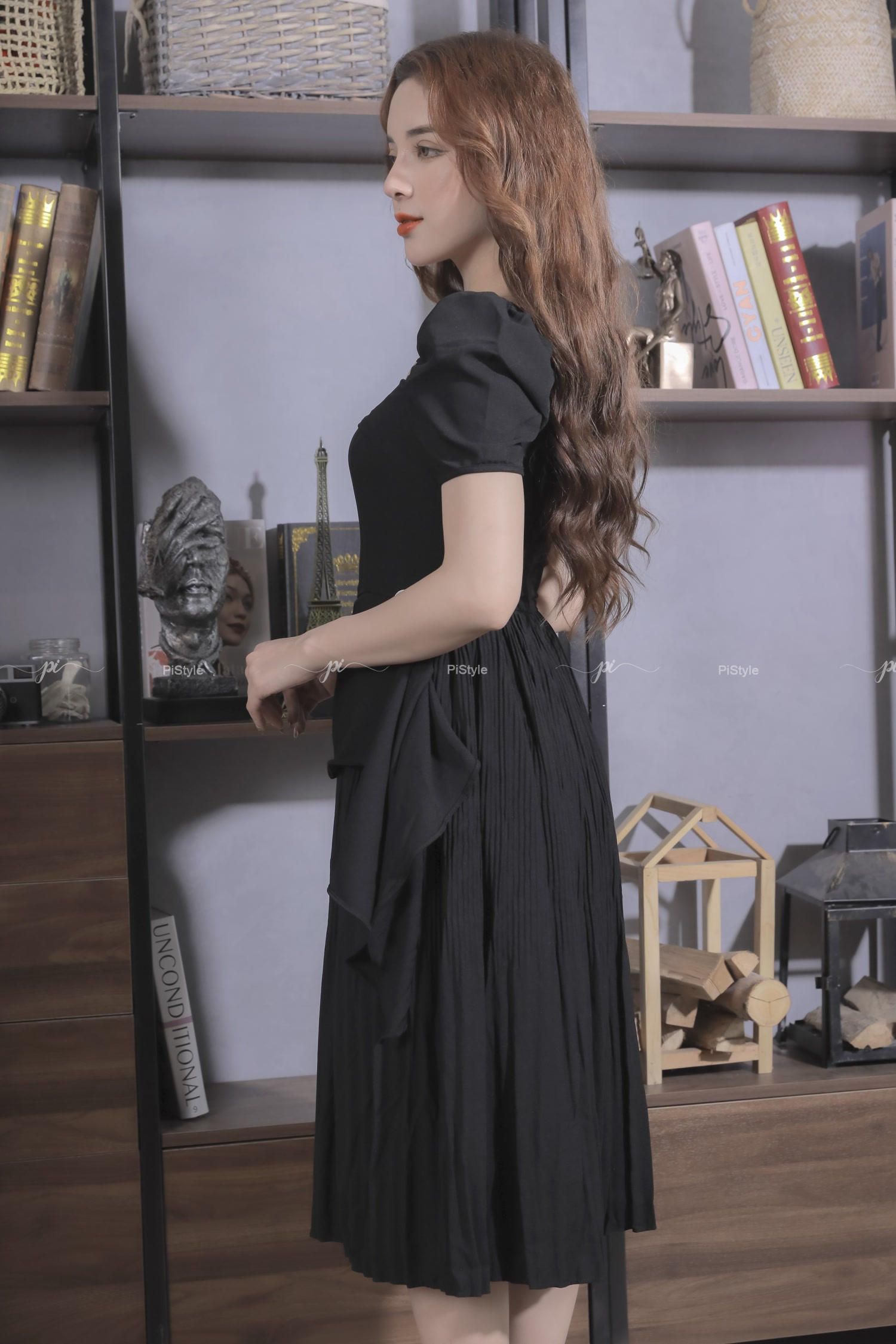 Pi - Váy cao cấp màu đen eo cách điệu 23V001