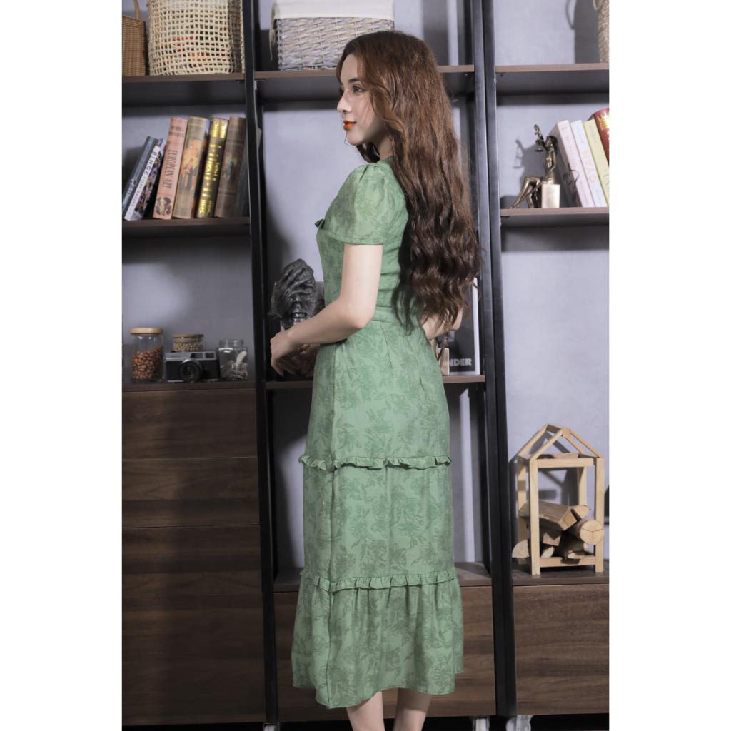 ✨Váy Nữ Cao Cấp Màu Xanh Xếp Ly 23V028 Pi Style