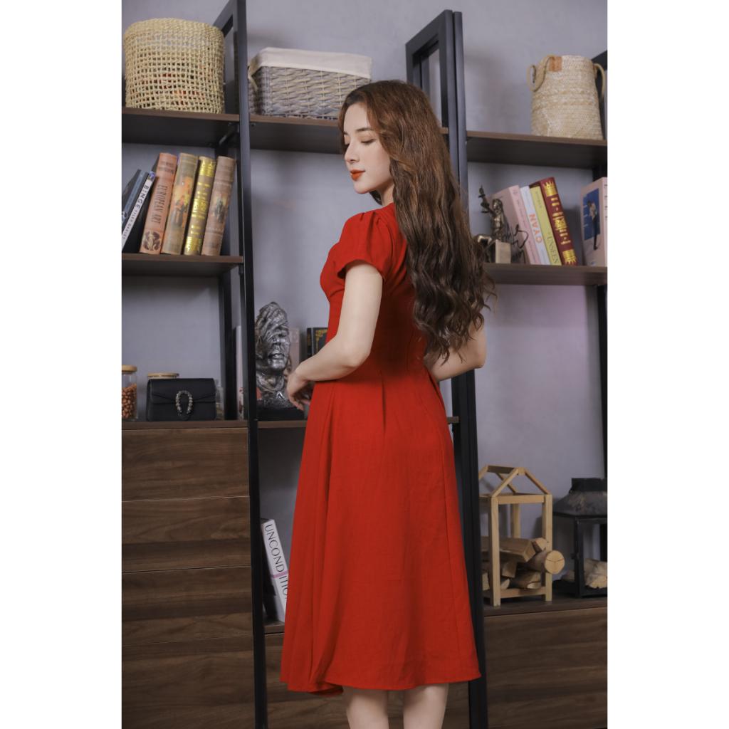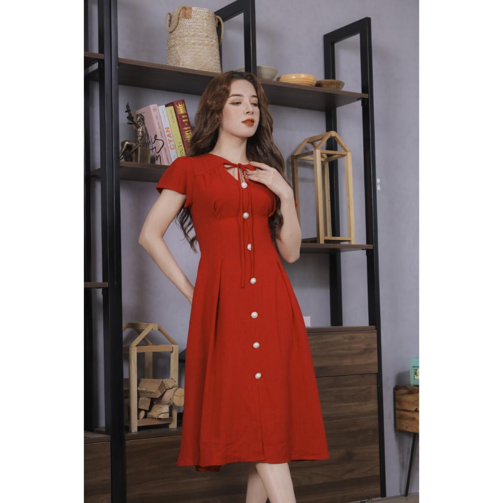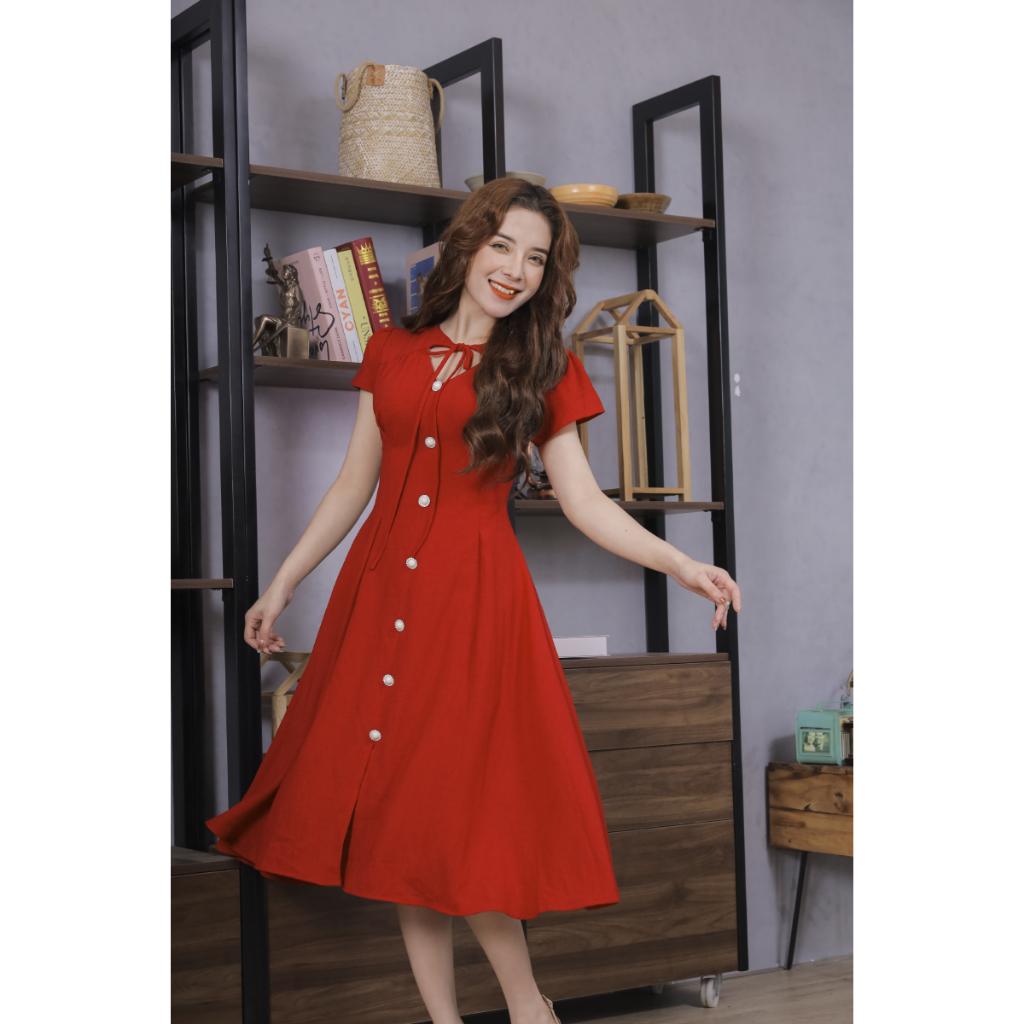 ✨Váy Nữ Vải Xước Màu Đỏ Cao Cấp 23V042 Pi Style