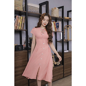 ✨Váy Nữ Vải Xước Màu Hồng Cam Cao Cấp 23V044 Pi Style