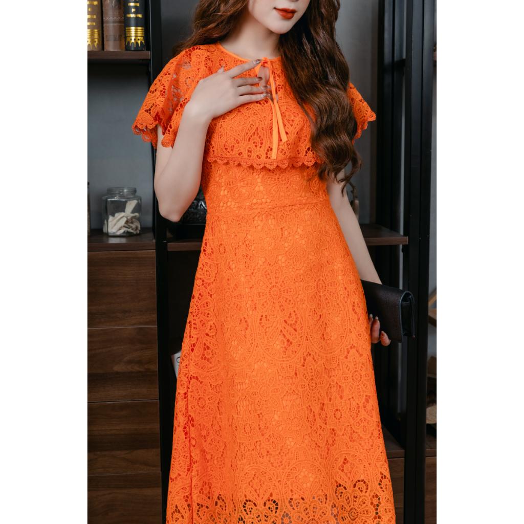 Váy Ren Màu Cam Bèo Cổ 23V005