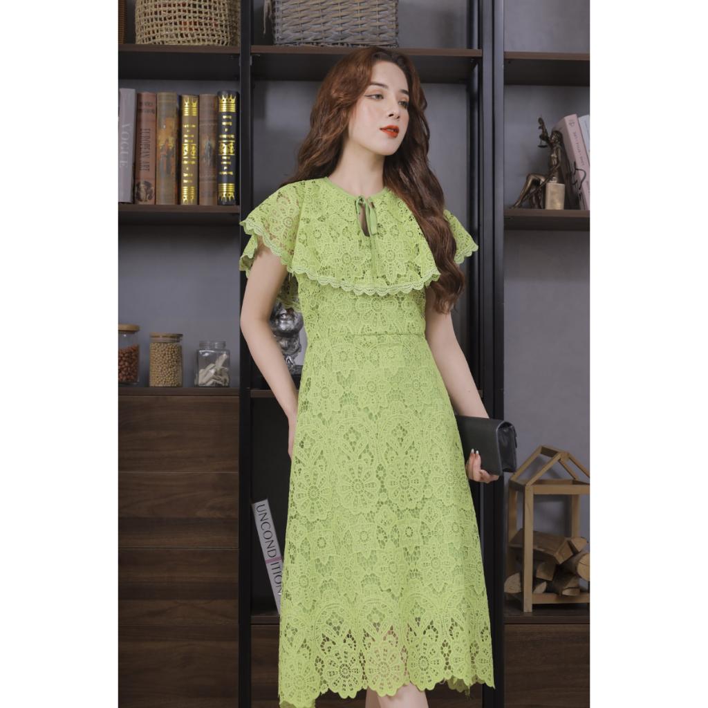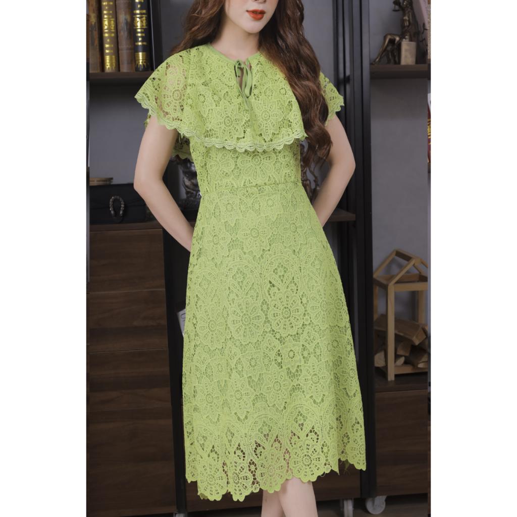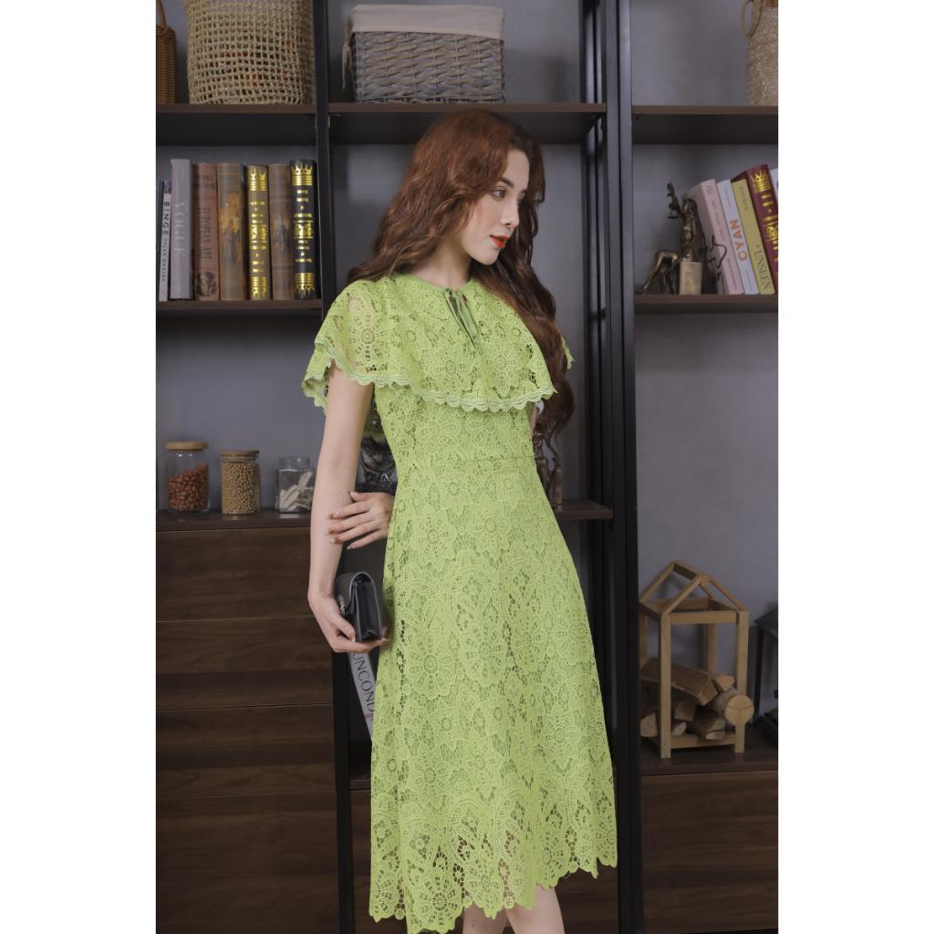 Váy Ren Màu Xanh Cốm Bèo Cổ 23V004