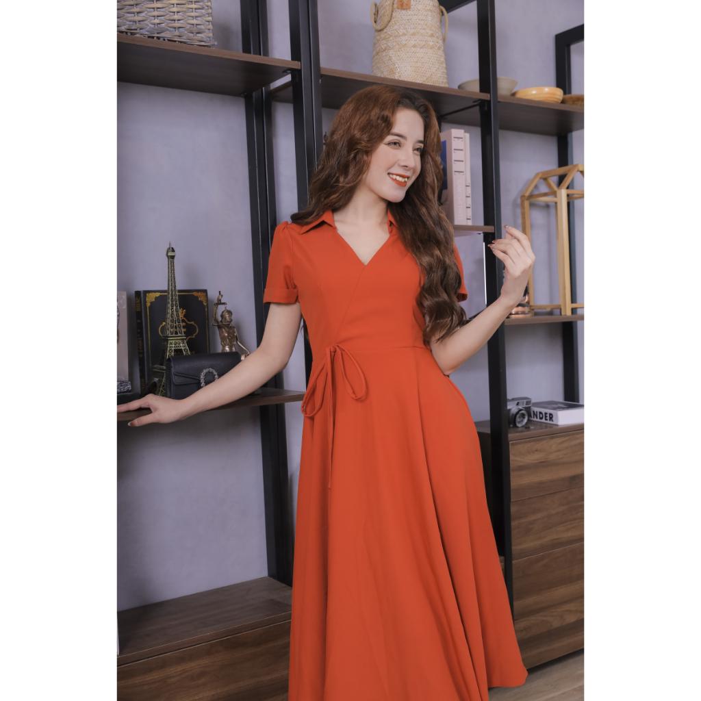 ✨Váy Trơn Màu Cam Nơ Eo Cao Cấp 23V047 Pi Style