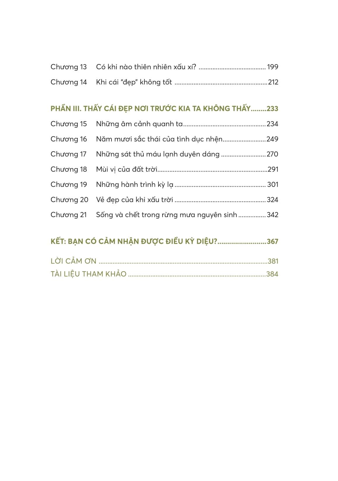 “Có nhiều cách để thưởng thức thiên nhiên quá”, Tò Mò hào hứng, cậu đã sẵn sàng để xuống thuyền. “Chúng ta có thể dùng trí óc, tìm tới kiến thức khoa học để đọc cuốn sách của thiên nhiên, lắng nghe những câu chuyện thiên nhiên kể. Chúng ta có thể dùng thân thể, đắm chìm và hòa m.ình bằng tất cả các giác quan, không chỉ bằng con mắt. Chúng ta có thể dùng tâm, gọi tên những cảm xúc của m.ình, hay đặt m.ình vào những điều trong tự nhiên, dùng hình dung và tưởng tượng để “thấy” những điều mà các giác quan không ghi nhận được, những điều đã xảy ra trong quá khứ hay sẽ xảy ra trong tương lai.”