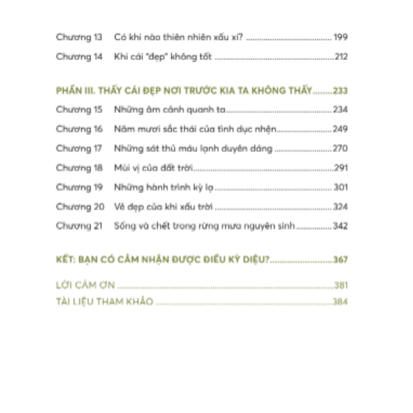 Cuốn sách chứa đựng nhiều quan điểm triết học, khối lượng thông tin tương đối phong phú liên quan đến quan điểm mỹ học, thế giới sinh vật… nhưng được truyền tải một cách khéo léo, dễ tiếp cận qua những cuộc đối thoại, trò chuyện đời thường giữa cặp đôi nhân vật Tò Mò & Suy Ngẫm, giúp khơi gợi ở bạn đọc cách cảm nhận đúng về vẻ đẹp của thiên nhiên: Thiên nhiên đẹp như nó vốn có, không phụ thuộc vào các quy chuẩn đẹp mà chúng ta áp cho con người và khi đã yêu thiên nhiên, một cách tự nhiên, chúng ta sẽ biết cách bảo vệ thiên nhiên.