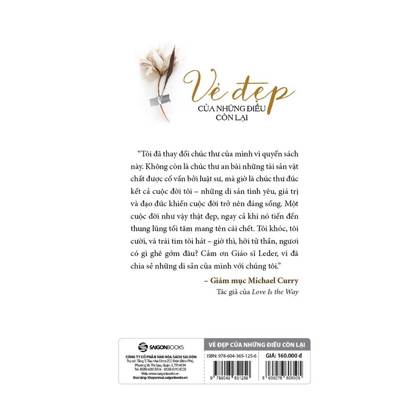 Quyển sách “Vẻ đẹp của những điều còn lại” do tác giả Steve Leder viết, ông là một giáo sĩ người Do Thái và đã chủ trì hơn 1000 tang lễ trong suốt 3 thập kỷ. Cuốn sách khuyến khích chúng ta đối mặt với cảm xúc của mình về cái chết, nhắc nhở chúng ta không sợ hãi sự kết thúc của sự sống mà hãy nắm bắt những gì nó có thể dạy ta khi ta còn nơi đây. Những câu chuyện và trải nghiệm của tác giả được ông truyền tải một cách tinh tế, khiến bạn có cảm giác như thể đang nói chuyện với một người bạn thân.