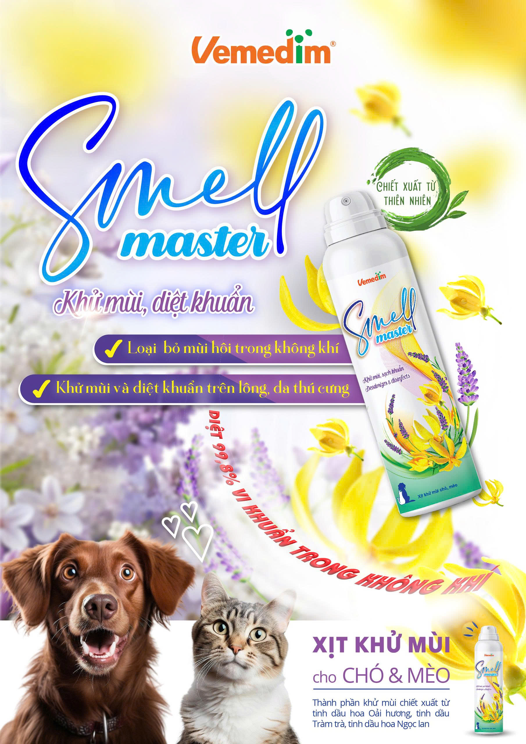 ✨Vemedim Smell Master Xịt Khử Mùi Diệt Khuẩn 99.9% trên Da, Lông cho Chó Mèo (phiên bản mới)