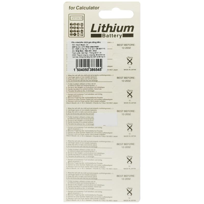 Vỉ 1 viên pin Maxell CR2025 3V lithium made in Japan