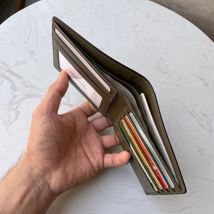 > Để vừa 25-40 tờ tiền thẳng, thẻ atm, giấy tờ xe cũ (cắt gọn phần nhựa ép) ở ngăn chính.