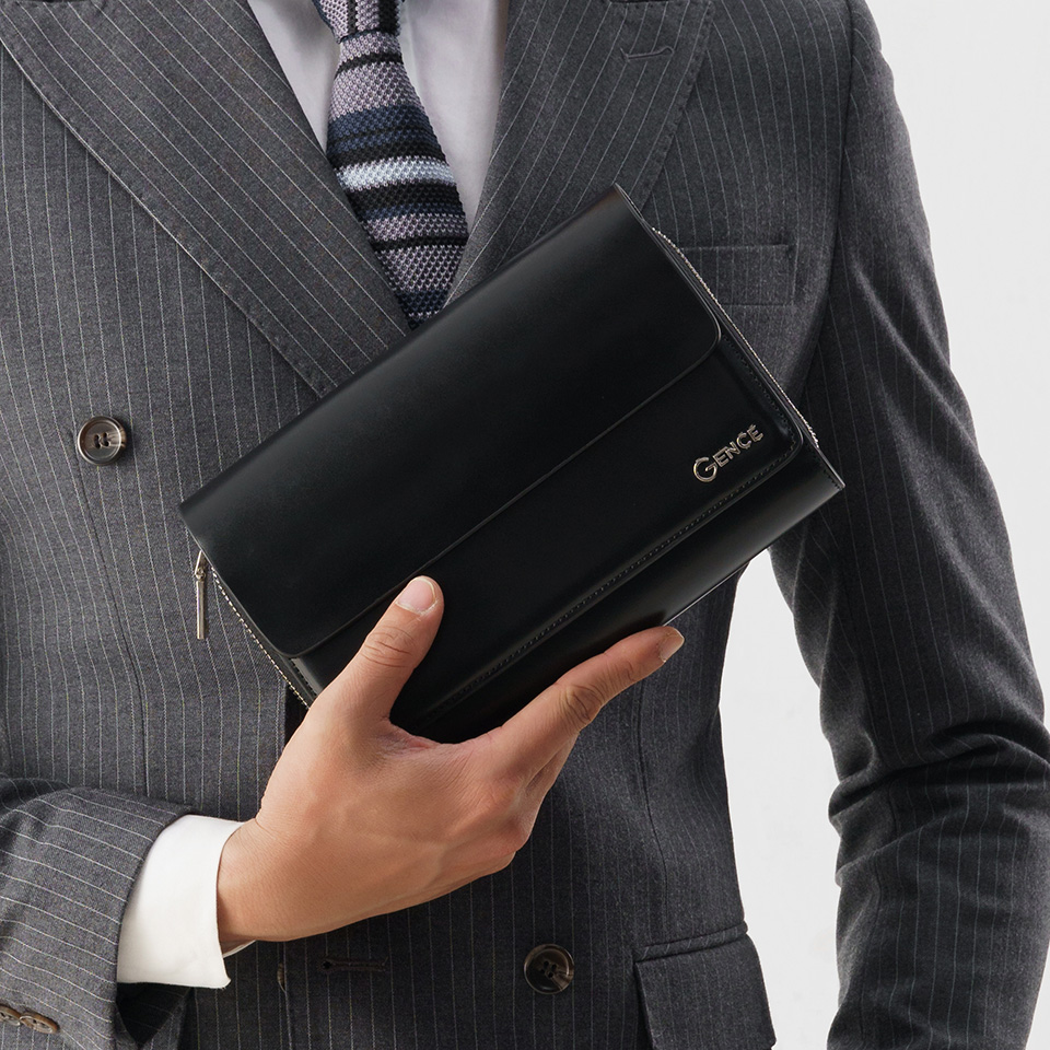 ✨Ví cầm tay nam Gence da bò Box 1 khóa HT04