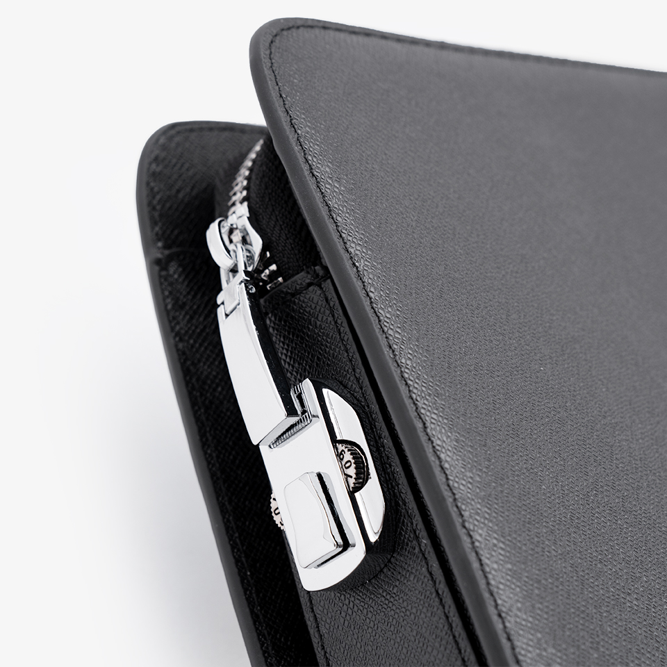 Clutch cầm tay nam da bò Taiga màu đen khóa số CK14