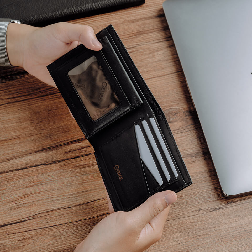 ✨Ví Da Chính Hãng Bóp Nam Hàng Hiệu GENCE C10 Da Bò Cao Cấp Màu Đen Dáng Ngang