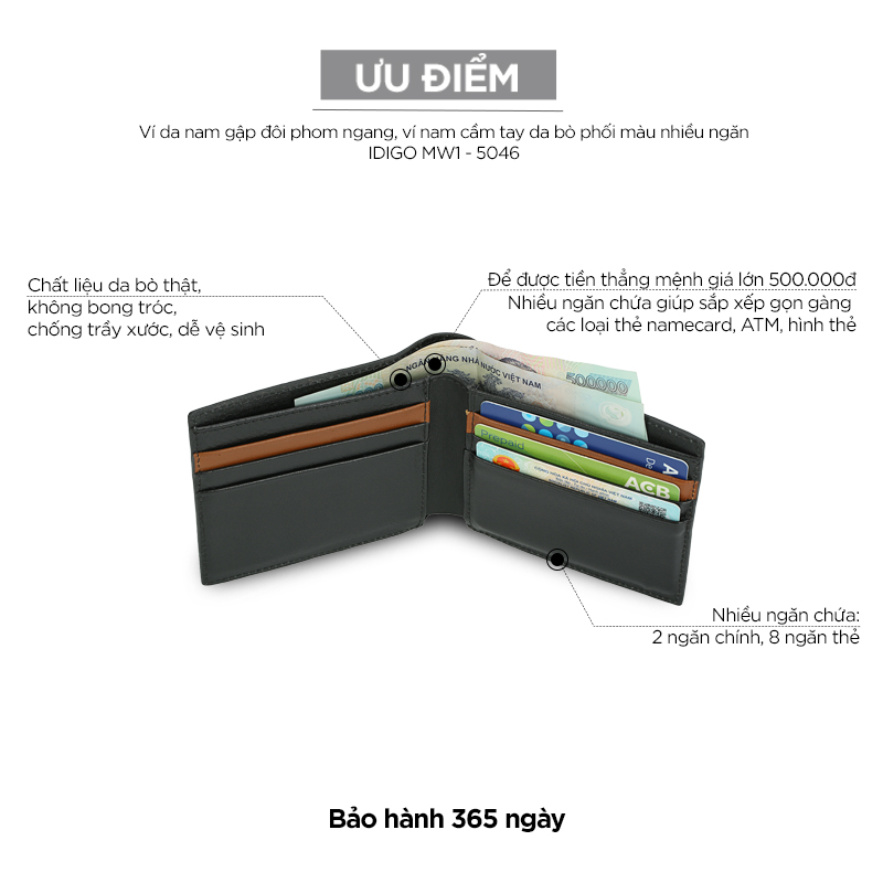 Để đổi mới so với những chiếc ví da tụ nhiên với kiểu da trơn truyền thống, IDIGO đã cho ra mắt Ví da nam gập đôi phom ngang phối màu nhiều ngăn IDIGO MW1-5046 chi tiết phối màu đảm bảo tính thời thượng và tiện ích cho chàng.