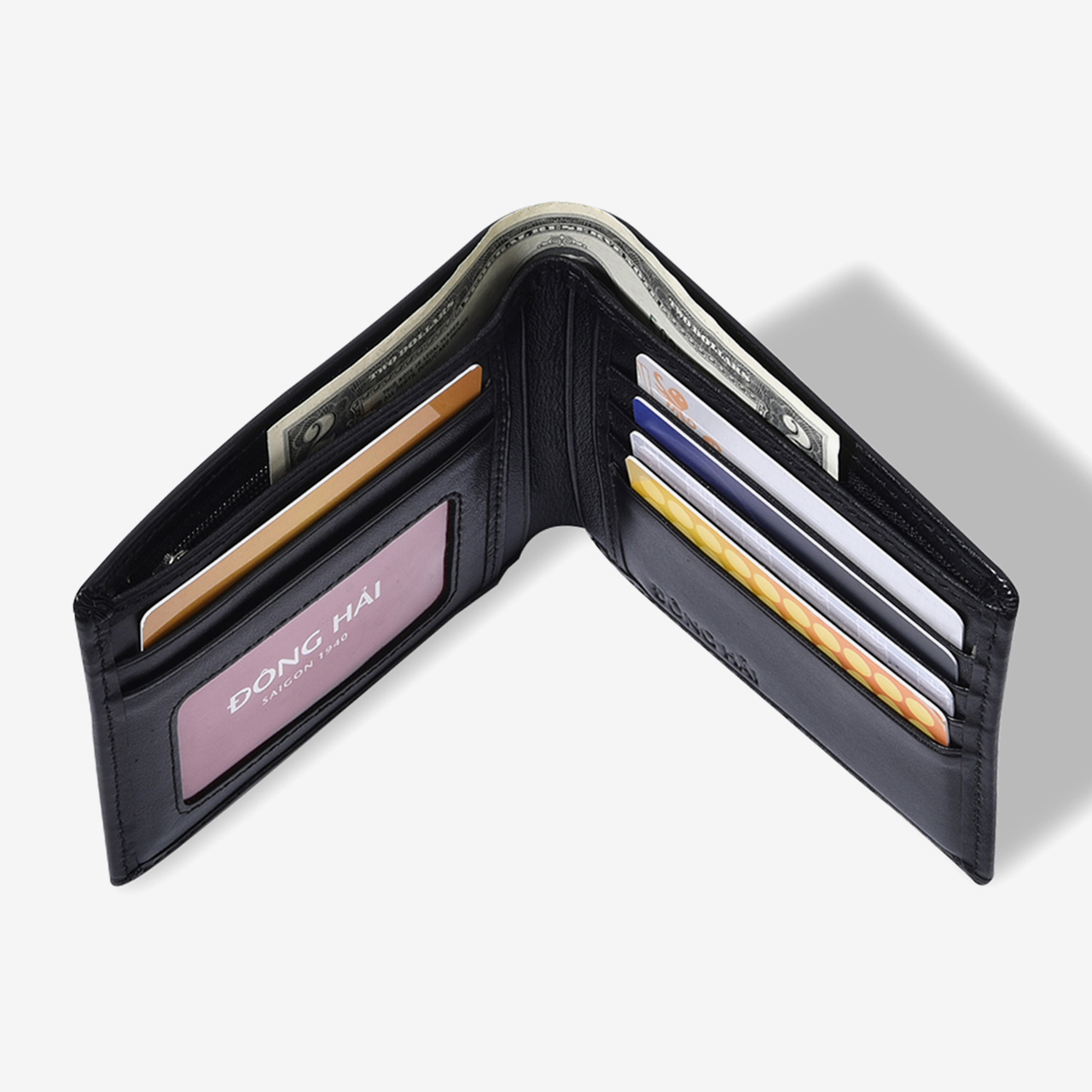 Ví nam Đông Hải AV007 với nhiều ngăn tiện lợi cho nam giới có thể đựng các vật dụng cần thiết như thẻ ngân hàng, giấy tờ tùy thân, tiền... Kiểu dáng ví gập nhỏ