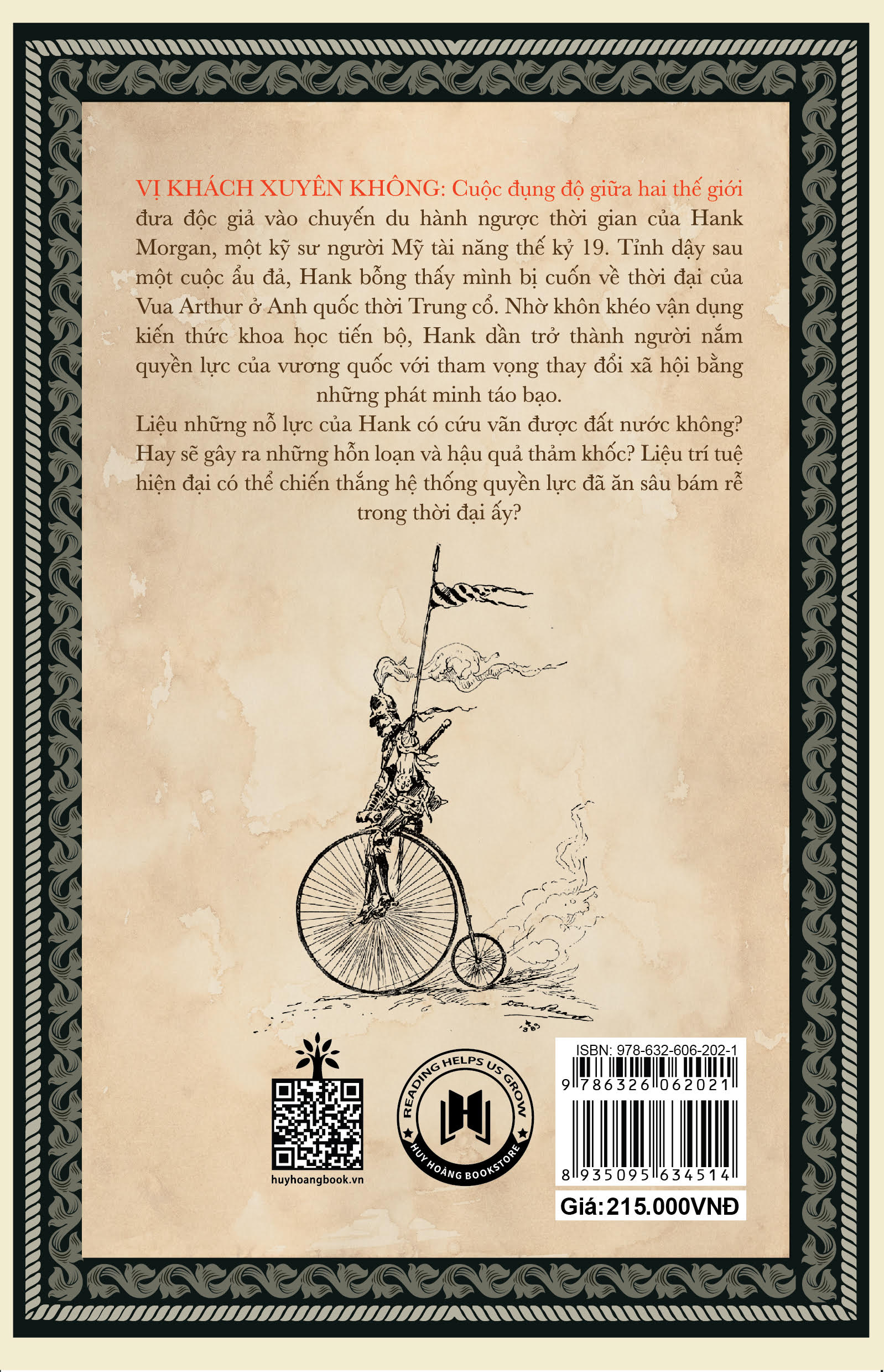 trường học, công ngTác phẩm xoay quanh hành trình của nhân vật Hank Morgan, một thợ cơ khí tài ba ở New England vào thế kỷ 19. Tỉnh dậy sau khi bị đánh vào đầu trong một cuộc ẩu đả, anh phát hiện mình đã quay ngược về thời đại của những hiệp sĩ và phù thủy trong Vương quốc Camelot của Vua Arthur thời Trung cổ. Nhờ biết vận dụng kiến thức khoa học và kỹ thuật tiến bộ của thời hiện đại, Hank trở thành người nắm quyền lực của vương quốc. Anh thiết lập hệ thống trường học, công nghệ in ấn và thậm chí phát minh ra thuốc súng. Anh mong muốn tạo ra một xã hội công bằng và dân chủ hơn nhưng gặp phải sự phản kháng từ giới quý tộc và giáo hội. Những nỗ lực của Hank đã dẫn đến nhiều mâu thuẫn và xung đột. Anh nhận ra rằng việc thay đổi xã hội thời Trung cổ không đơn giản như anh nghĩ. Cuối cùng, những cải cách của anh không cứu vãn được xã hội mà còn khiến mọi thứ rơi vào hỗn loạn! hệ in ấn và thậm chí phát minh ra thuốc súng. Anh mong muốn tạo ra một xã hội công bằng và dân chủ hơn nhưng gặp phải sự phản kháng từ giới quý tộc và giáo hội. Những nỗ lực của Hank đã dẫn đến nhiều mâu