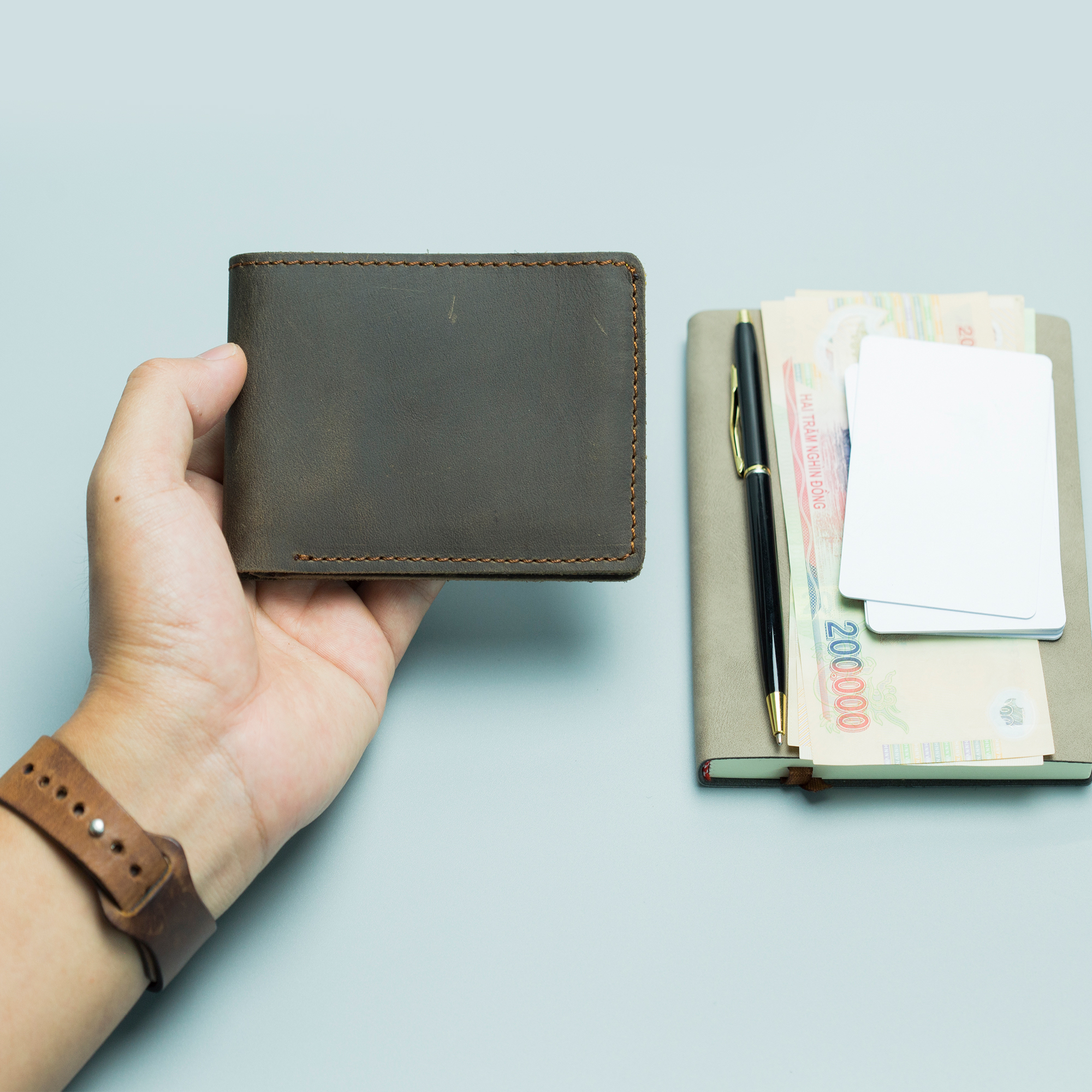 Ví mini nam da bò sáp ngựa điện Crazyhorse V125 cao cấp, bóp đựng thẻ da thật, đường chỉ tinh tế, ví nam nhỏ gọn dáng đứng,