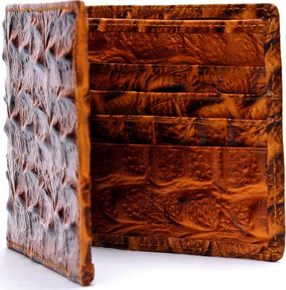 Ví/Bóp nam Huy Hoàng da bò vân cá sấu màu nâu 2118