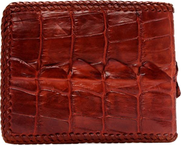 ✨Ví Nam Da Cá Sấu Đan Viền Gai Huy Hoàng HT2223 (12.5 x 10 cm) - Nâu Đất