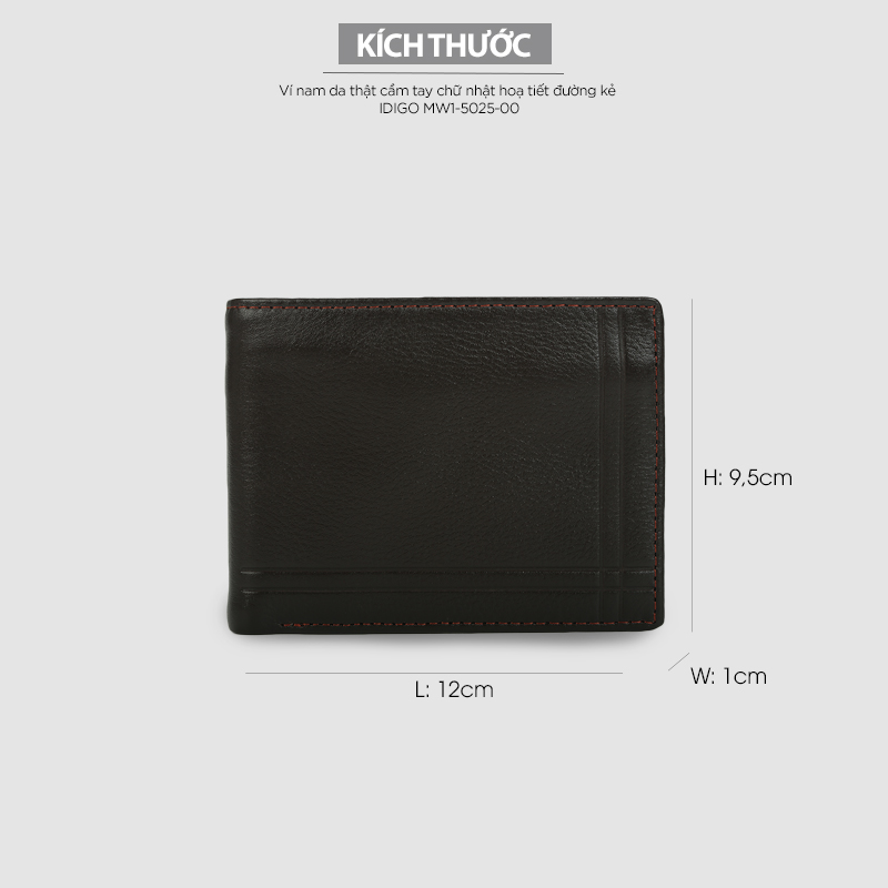 Ví nam da thật cầm tay chữ nhật hoạ tiết đường kẻ là một trong những new item của IDIGO với thiết kế phom chữ nhật truyền thống cùng chất liệu da bò thật bền bỉ với hoạ tiết đường kẻ thanh lịch. Size ví nhỏ gọn mang đến sự lịch lãm, hiện đại không kém phần nam tính cho người dùng. Trọng lượng ví chỉ 90 gram.