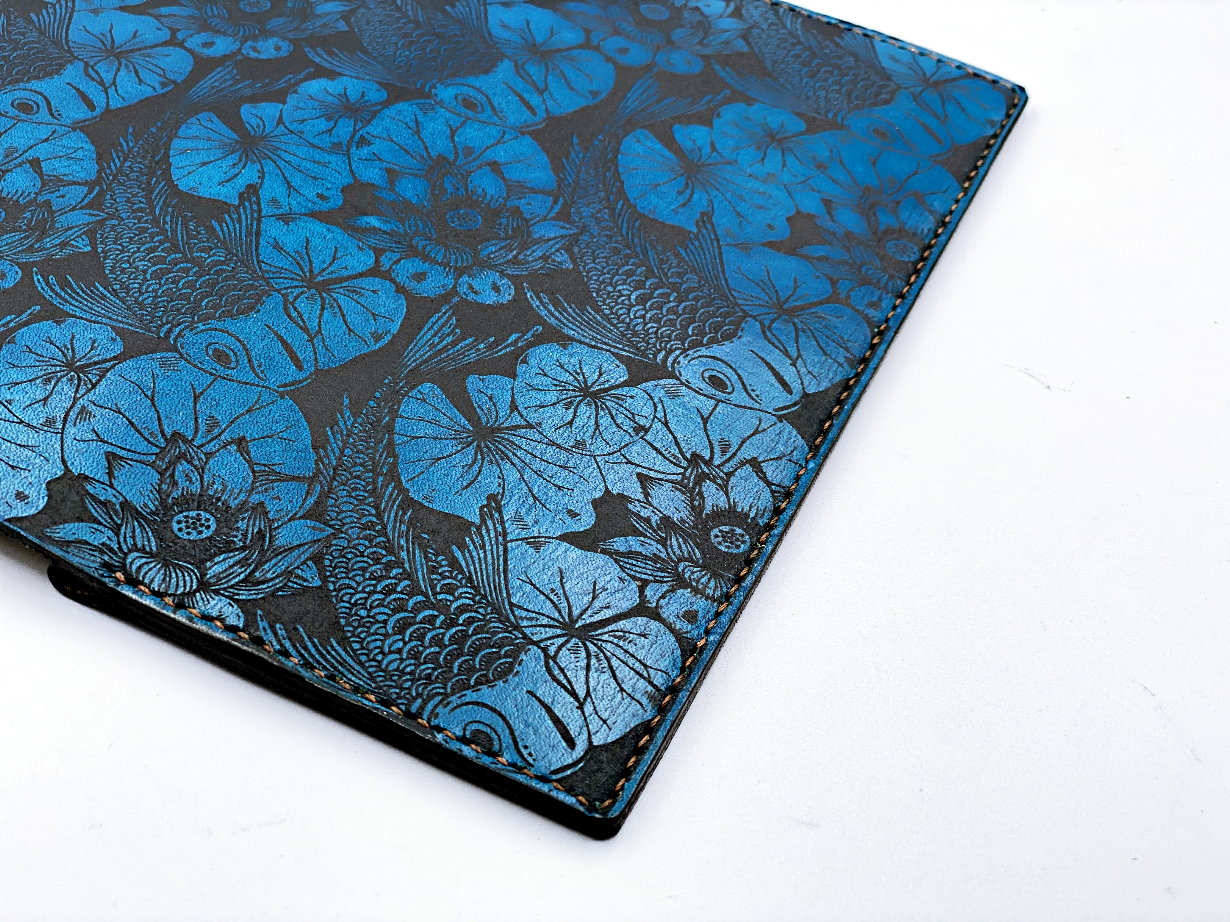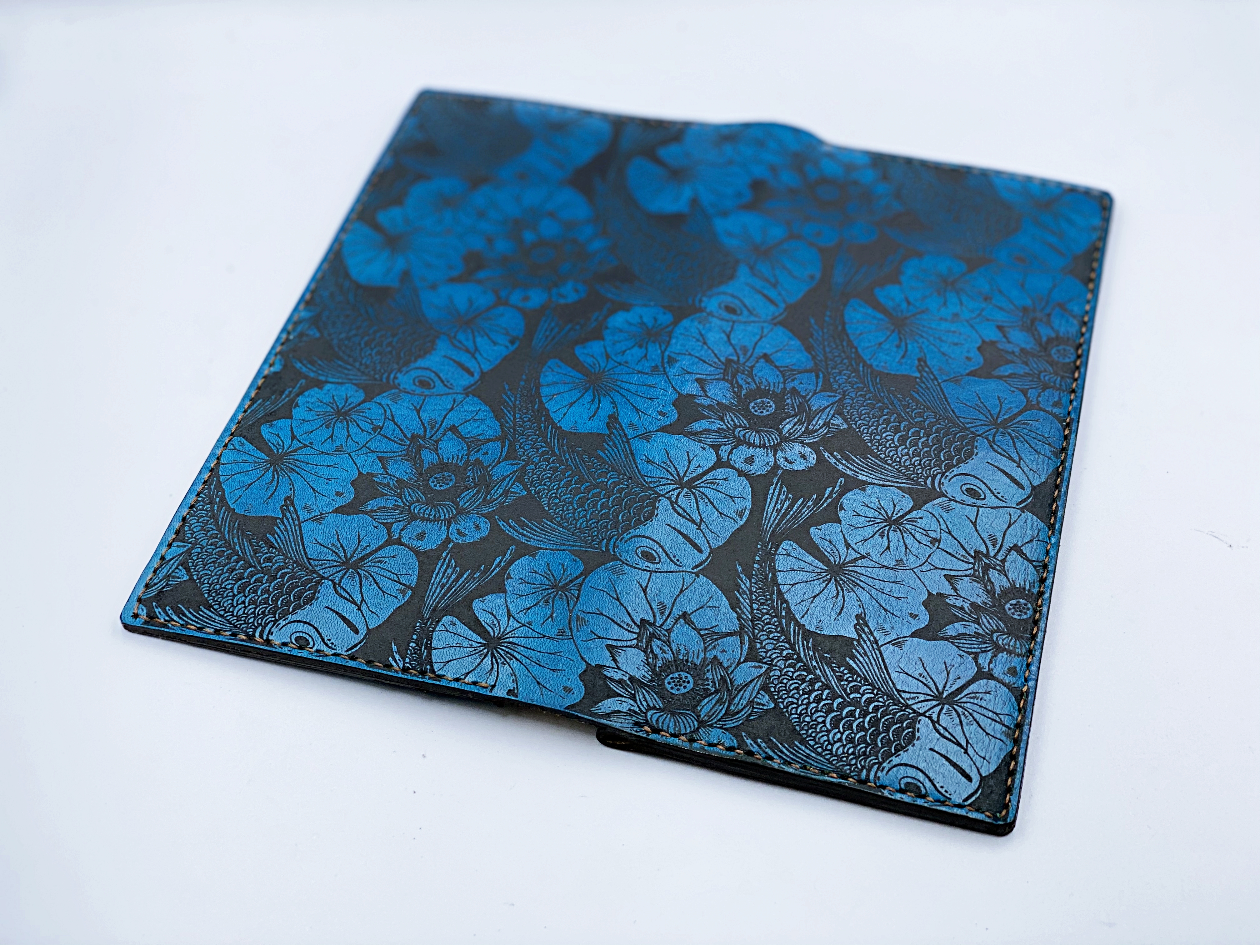 ✨Ví nữ cầm tay da bò handmade họa tiết cá Koi
