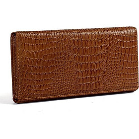 Ví/Bóp nữ da bò Huy Hoàng vân cá sấu lớn 3 gấp màu nâu đất 3153