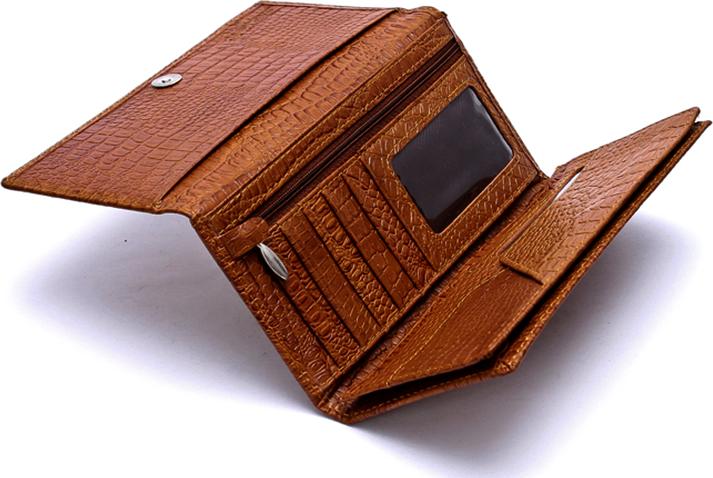 Ví/Bóp nữ da bò Huy Hoàng vân cá sấu lớn 3 gấp màu nâu đỏ 3169