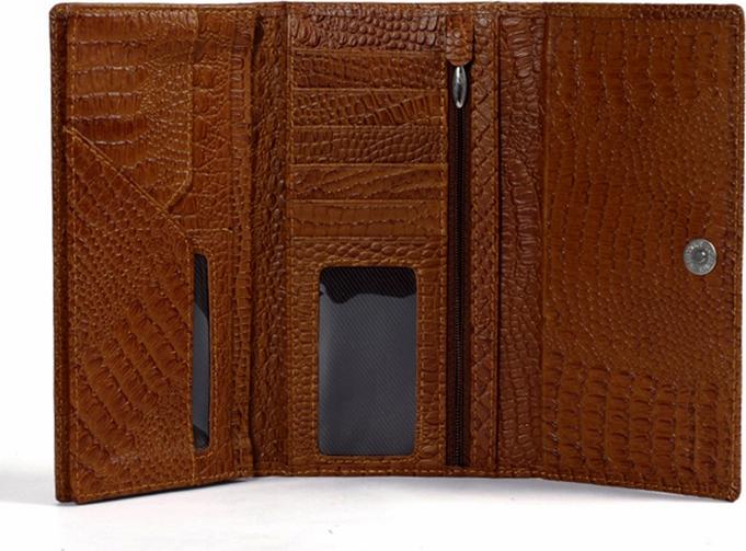 Ví/Bóp nữ da bò Huy Hoàng vân cá sấu lớn 3 gấp màu nâu đỏ 3154