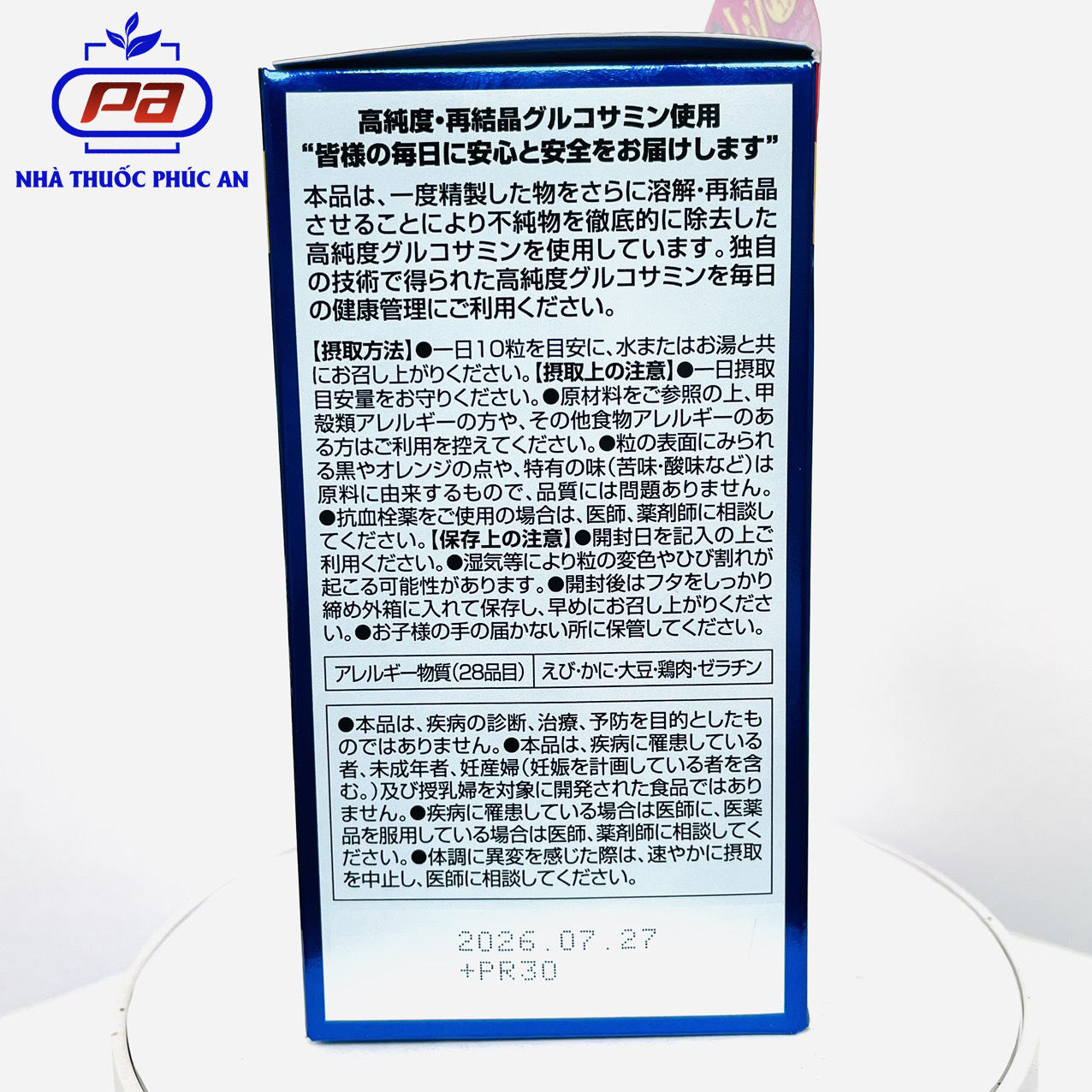 - Sản phẩm chính hãng sẽ có tem chống hàng giả từ hãng orihiro, tem phụ dán trên hộp. Date in rõ ràng, không tẩy xóa, dán đè THÀNH PHẦN CỦA GLUCOSAMINE ORIHIRO: Glucosamine hydrochloride, Phức hợp protein Mucopolysaccharide (chứa chondroitin), chất phân giải Collagen lên men, chiết xuất mầm đậu nành, Axit hyaluronic trọng lượng phân tử thấp, chiết xuất sụn gà (chứa collagen loại II), Canxi, Magie, kẽm, vitamin B1, vitamin B6, vitamin D, vitamin K, axit Folic. CÔNG DỤNG CỦA GLUCOSAMINE ORIHIRO: