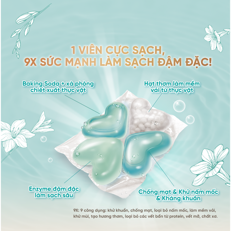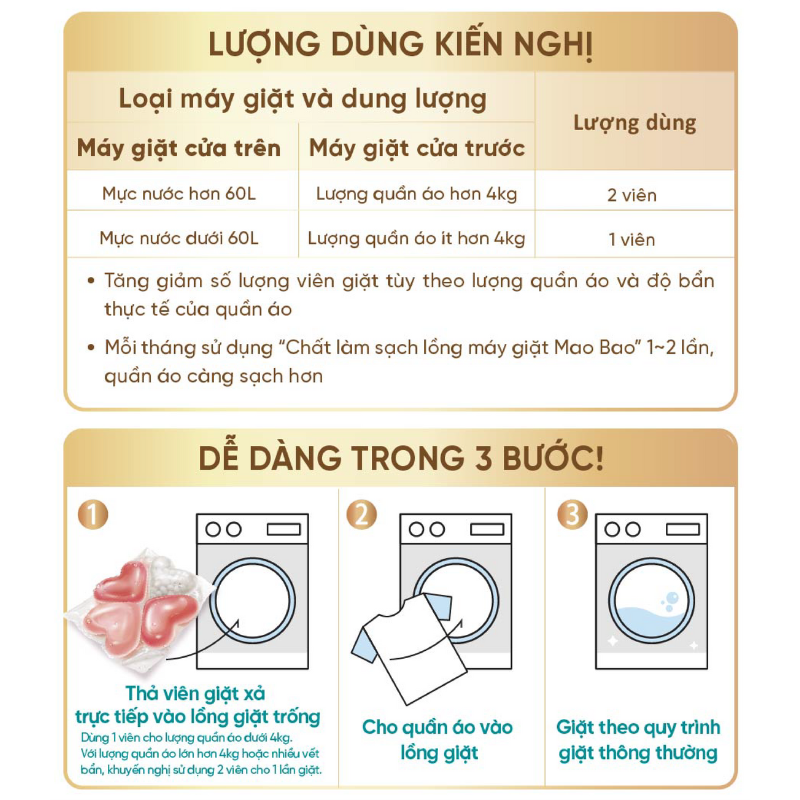 ƯU ĐIỂM NỔI BẬT Chỉ cần thả 1 viên vào lồng giặt, bạn sẽ trải nghiệm 4 lợi ích giặt giũ mà không cần xách nặng hay đo đạc: • Tiện Lợi Tối Đa: Thao