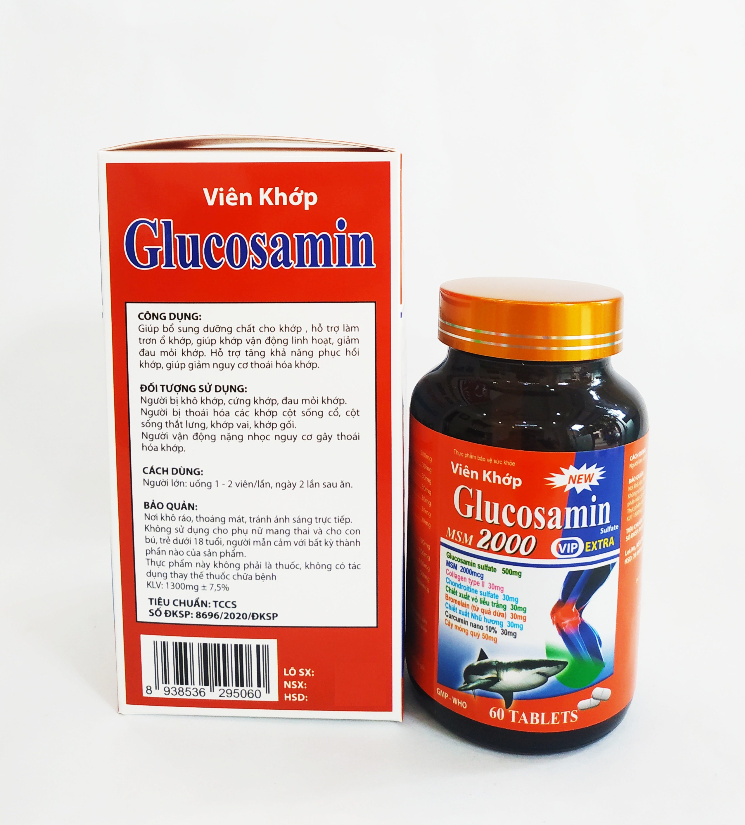 Thông tin chung: Thành phần: - Glucosamin sulfat 2KCl: 750mg - MSM: 120mg - Chondroitin sulfat natri 90%: 50mg - Collagen type 2: 30mg - Bột Sụn vi cá mập: 25mg - Bromelain 2400 GDU/g: