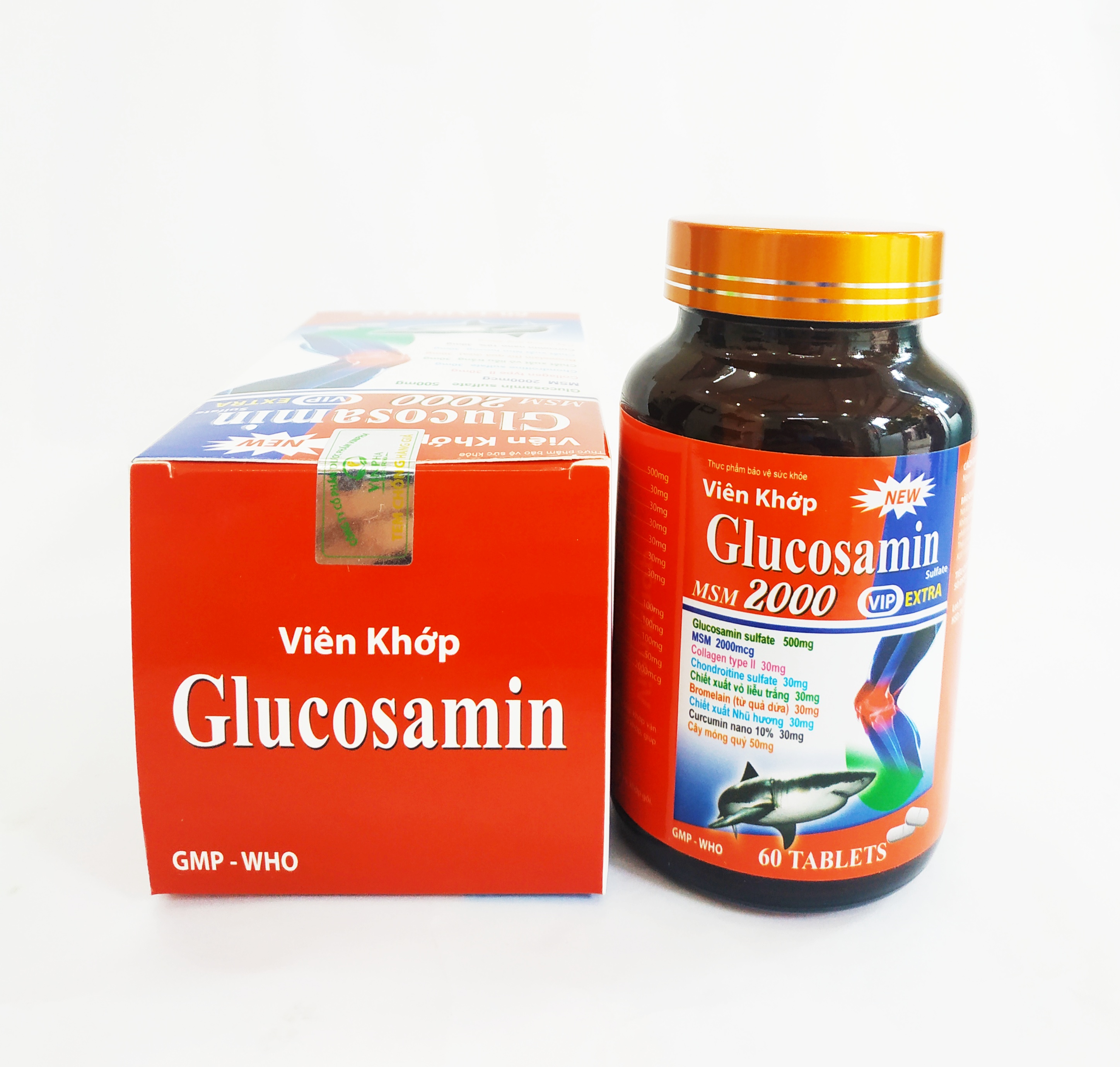 Thành phần : Trong mỗi viên nén có chứa: - Glucosamin sulphate 2 NaCl 750mg. - MSM (Methysulfonylmethane) 50mg, Calci gluconate 100mg, Cao xương ngựa bạch 70mg, Chondroitin sulphate 50mg, Collagen type II 30mg, sụn