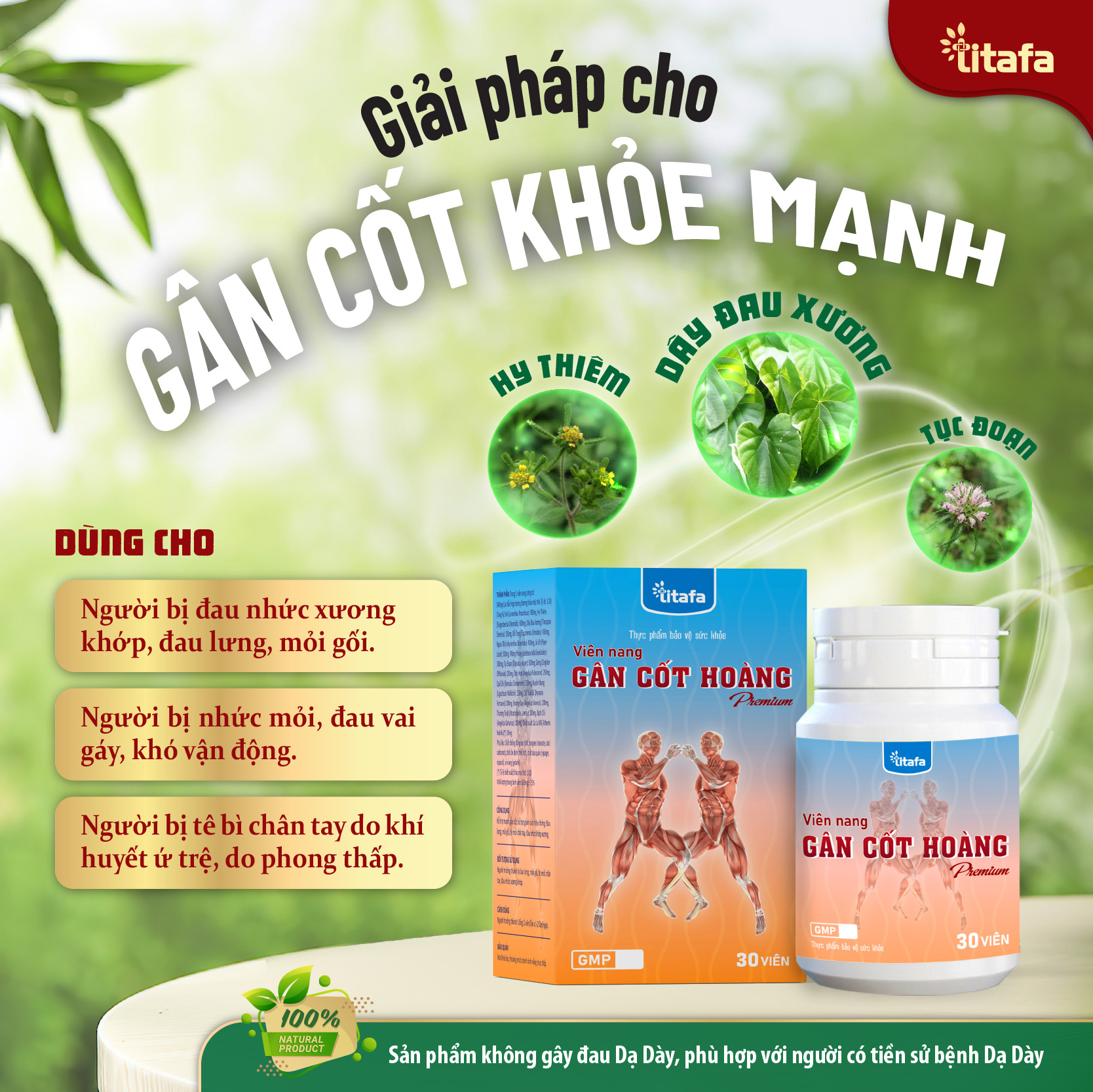 ✨Viên nang GÂN CỐT HOÀNG (Hộp 30 viên) – Hỗ trợ mạnh gân cốt, giảm đau nhức xương khớp, tê bì chân tay [Chính hãng TITAFA]