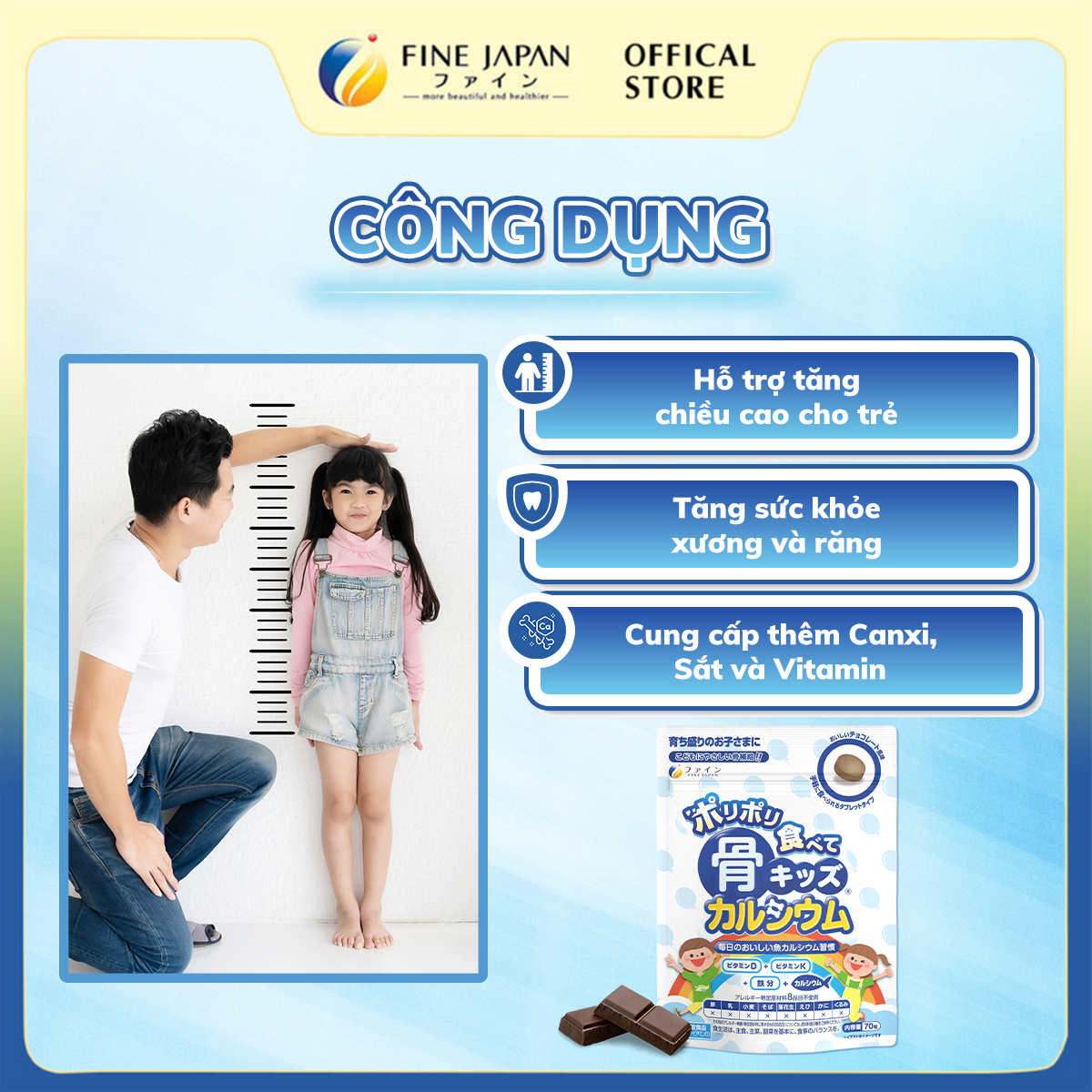 ► Viên nhai Canxi Cá Tuyết Bone’s Calcium Tablets for Kids FINE JAPAN bổ sung Canxi phát triển chiều cao