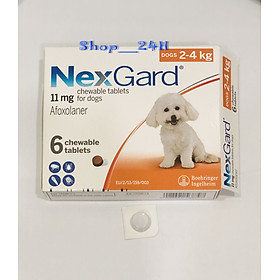 Viên Nhai NexGard Phòng & Trị Ve, Rận, Ghẻ Cho Chó là thuốc dạng nhai ( ăn trực tiếp ) của hãng Merial, Pháp.