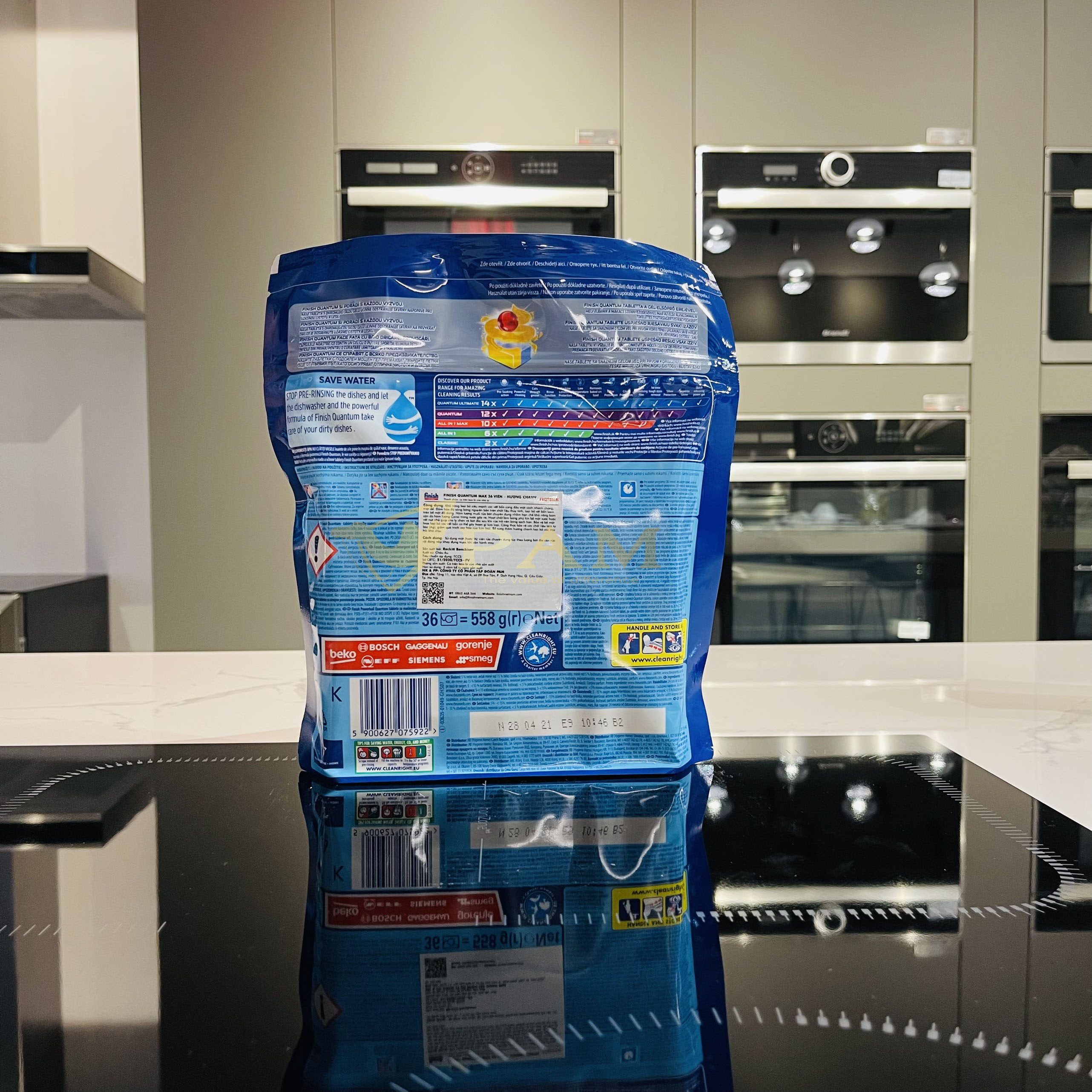 Túi 36 viên rửa chén Finish Quantum Dishwasher Tablets Lime Blast (là viên rửa chén cao cấp chuyên dùng cho máy rửa chén).